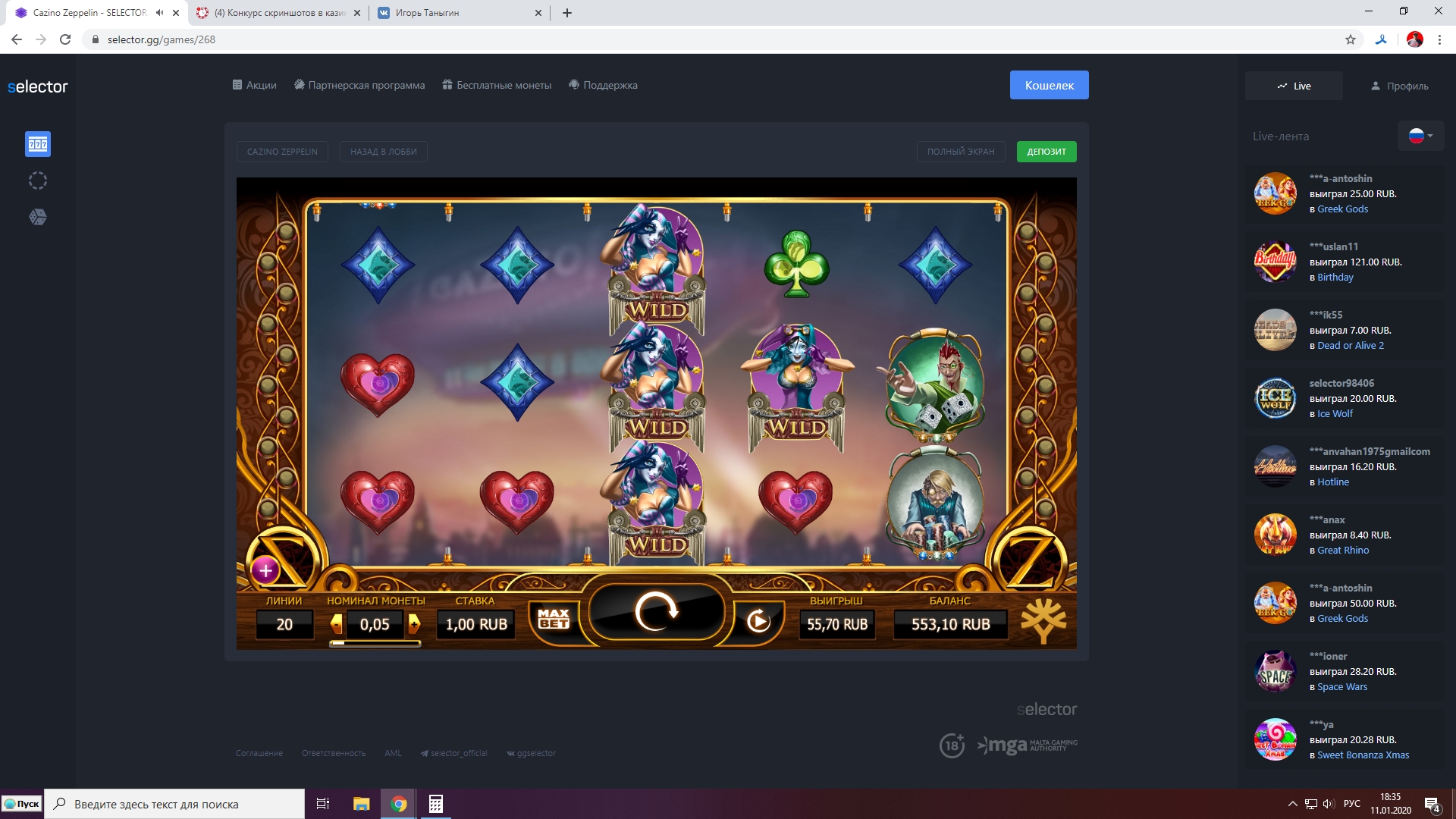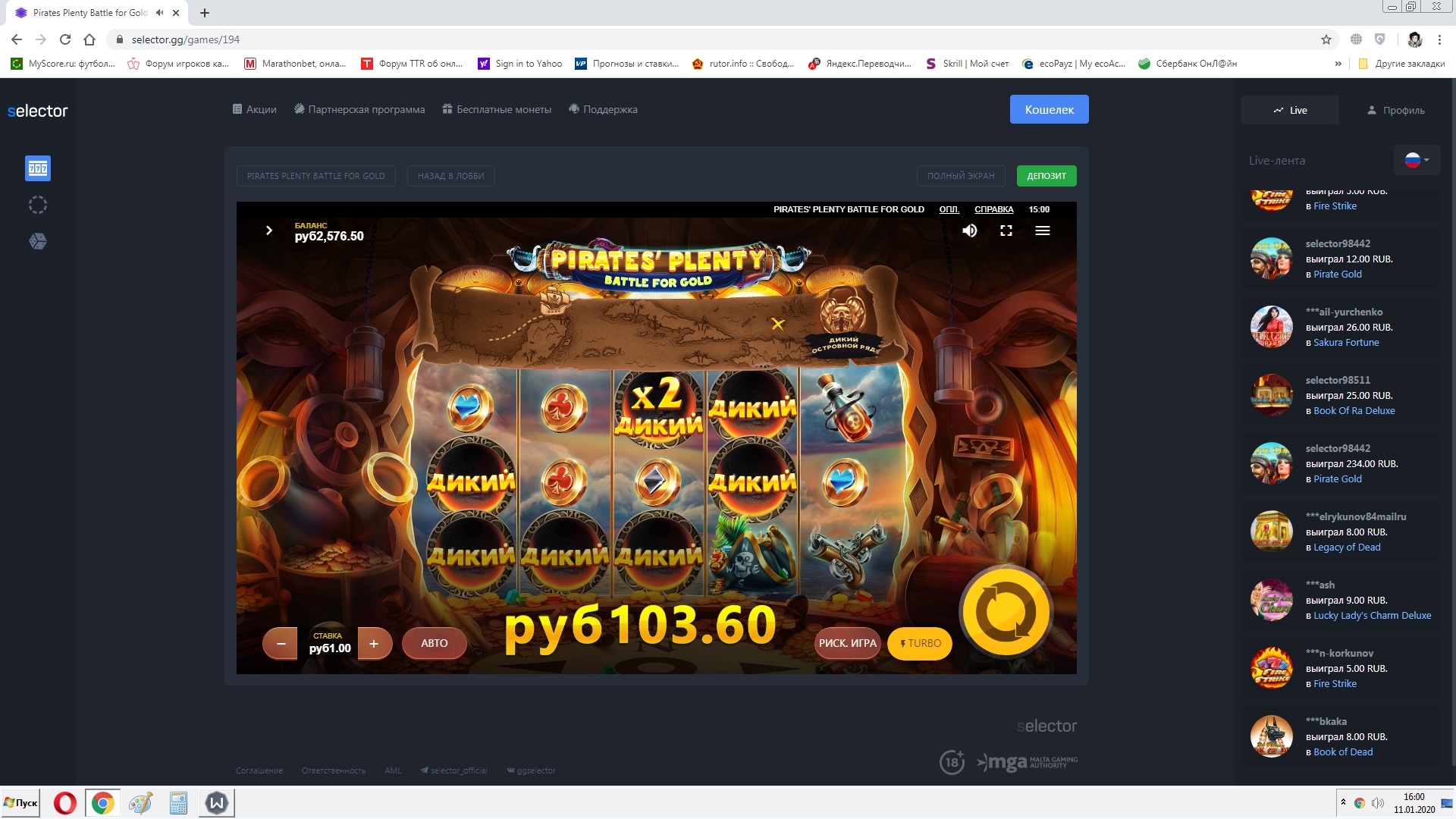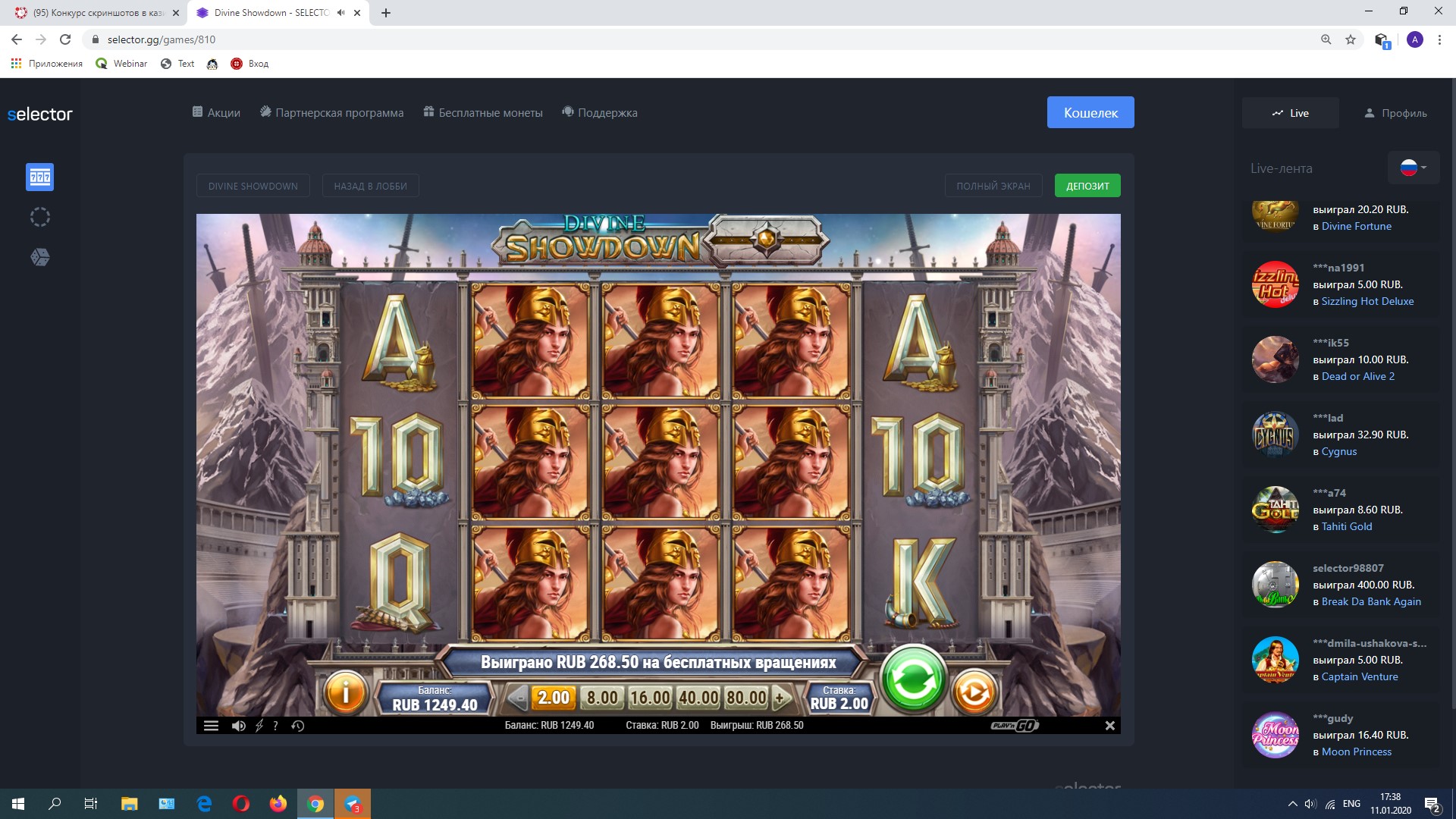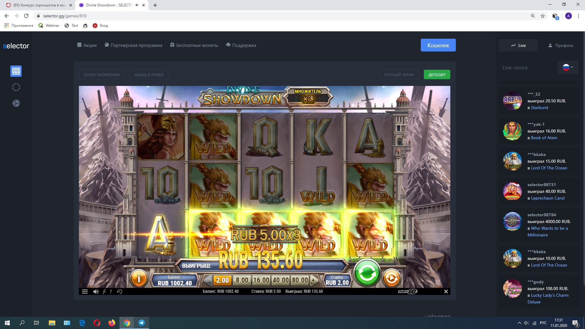 Конкурс Конкурс скриншотов в казино Selector с призами на 11000 рублей!
