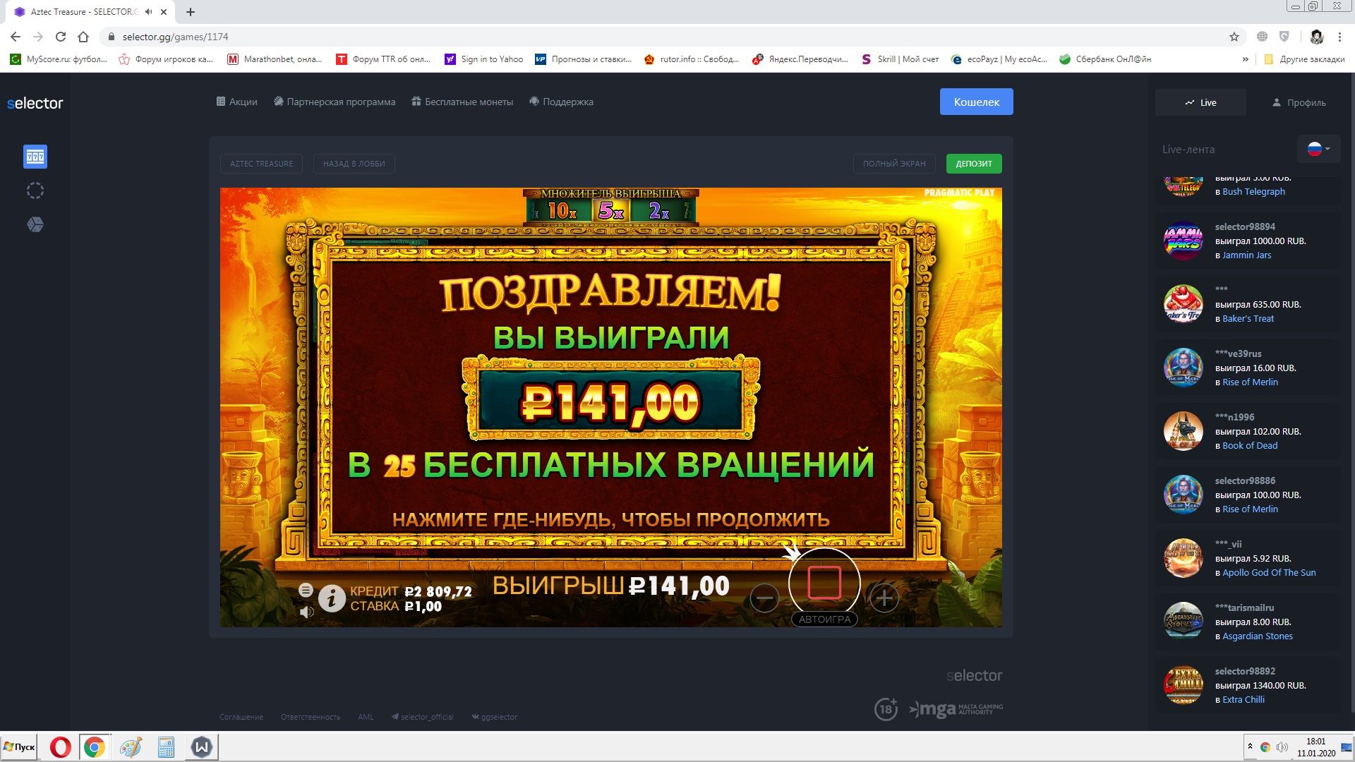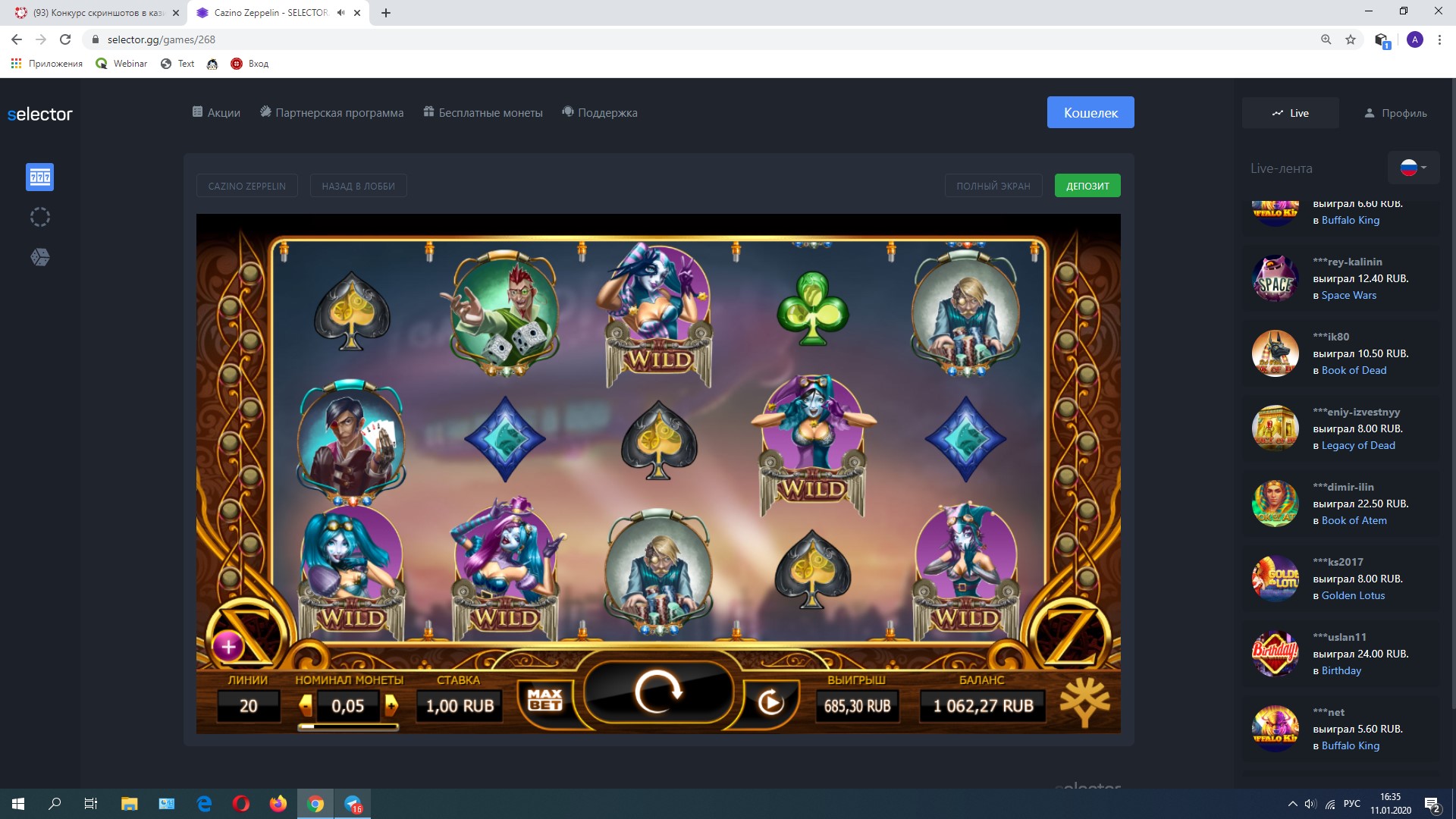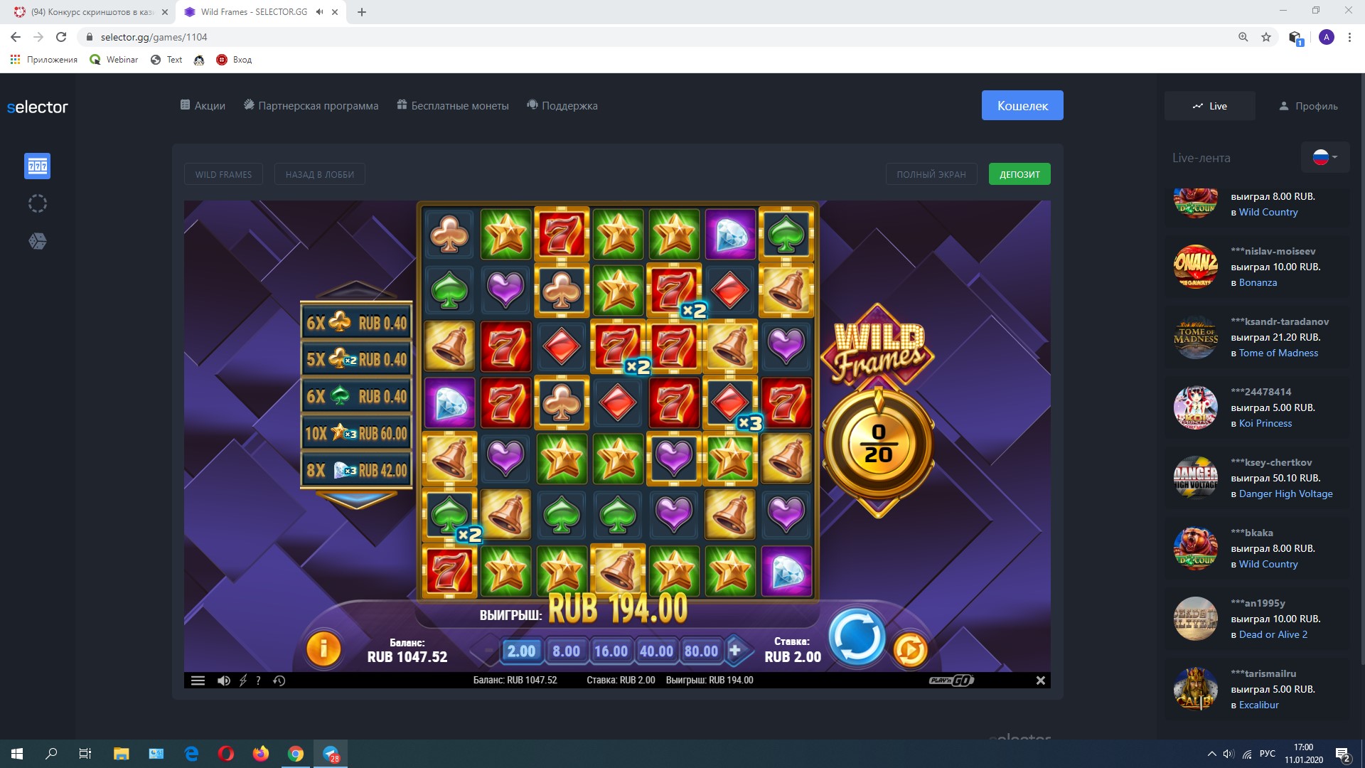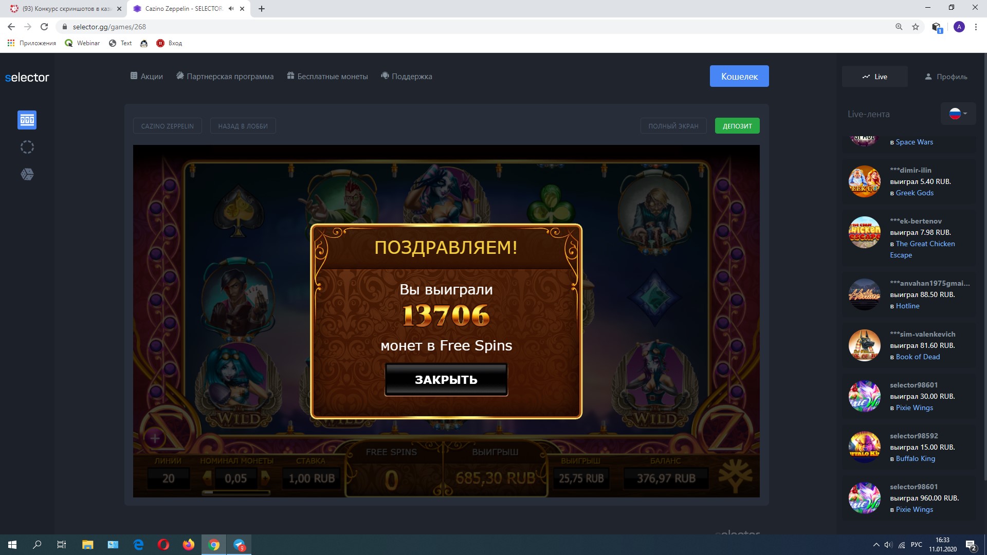Конкурс Конкурс скриншотов в казино Selector с призами на 11000 рублей!