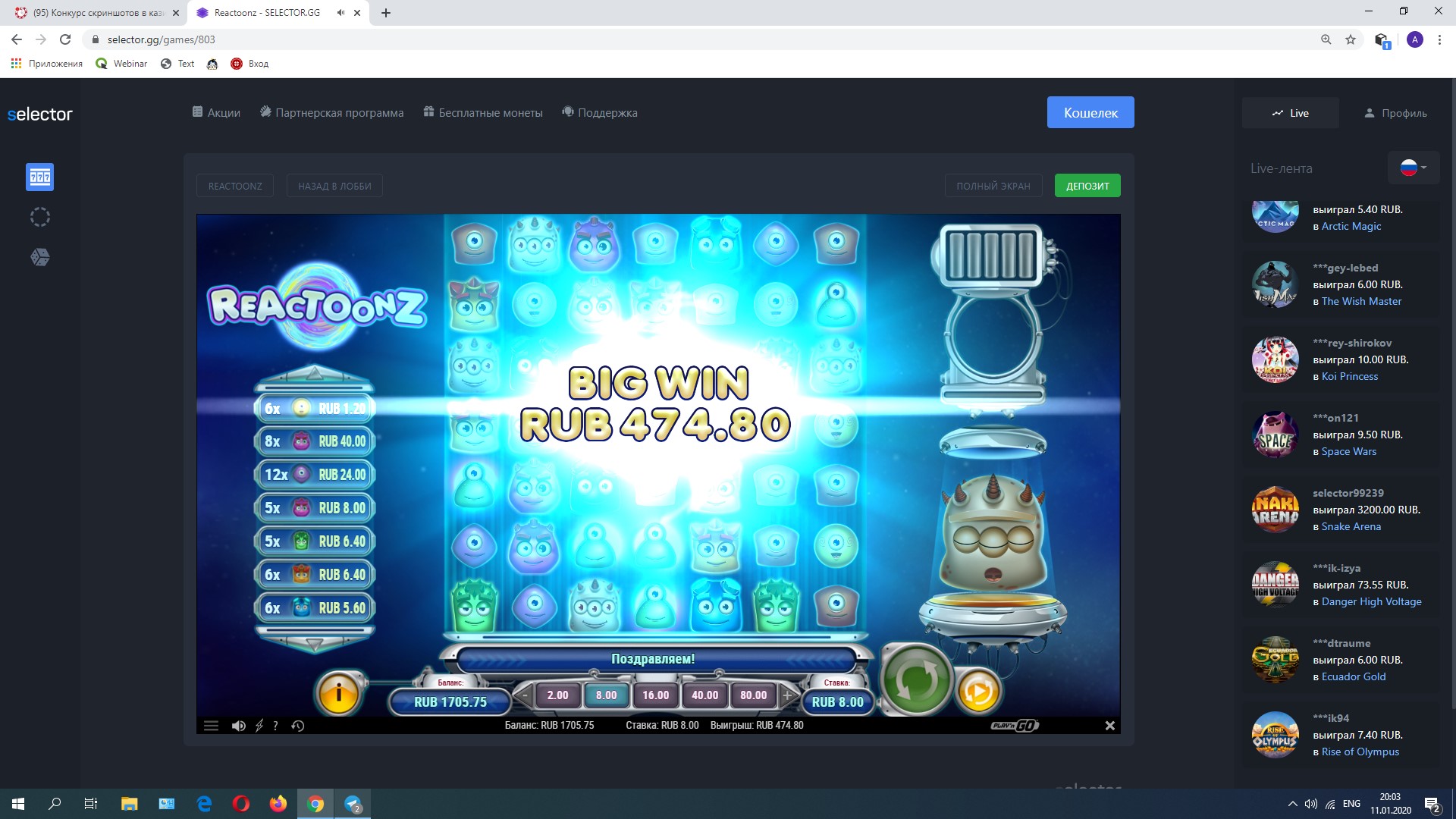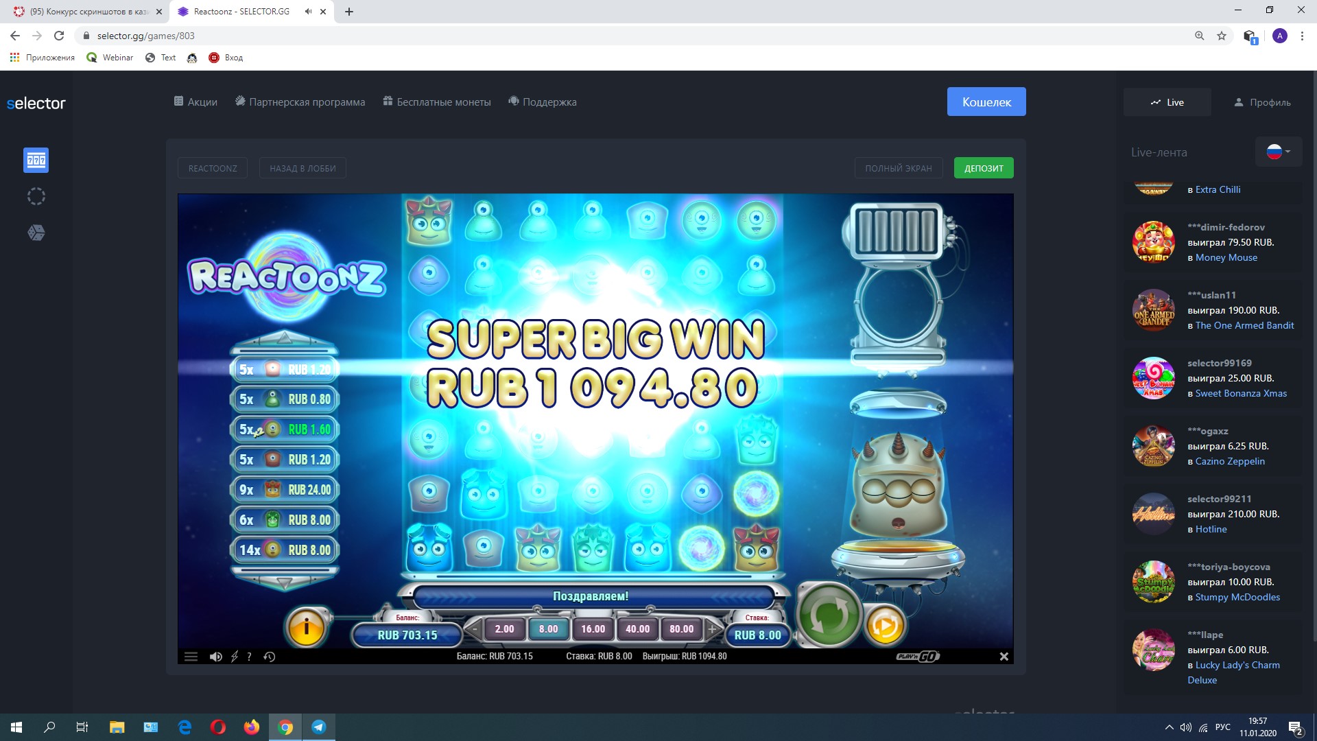 W win888 Доминатор Вайлдов Проверенный 24 Окт 2018 418 63 61 Credits ¢1,303 11 Янв 2020 #50 х2162 #Selector_mycasino Вложения Скриншот 11-01-2020 215756.jpg 950.1 KB Просмотры: 416 Реакции: Anatoliy и Tarik