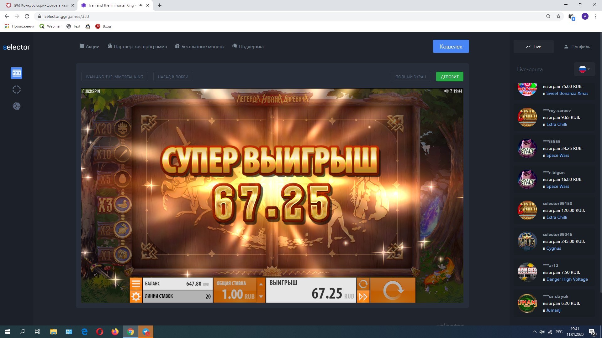 Anatoliy Агент Респинов Проверенный 2 Ноя 2015 1,067 118 37 Credits ¢25 11 Янв 2020 #48 х67,25 #Selector_mycasino