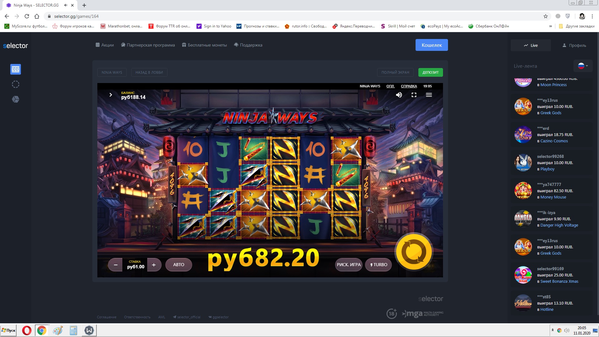 Anatoliy Агент Респинов Проверенный 2 Ноя 2015 1,067 118 37 Credits ¢25 11 Янв 2020 #46 х61,3 #Selector_mycasino