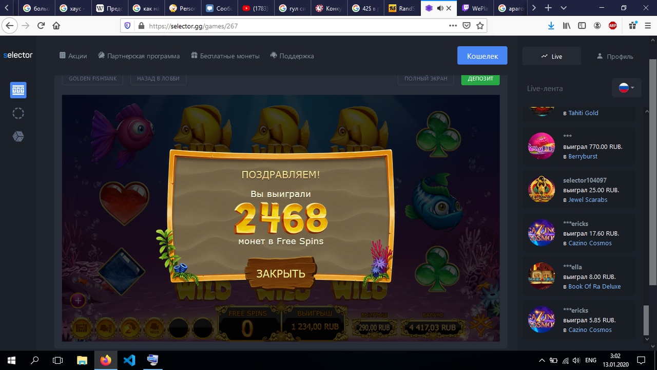 W win888 Доминатор Вайлдов Проверенный 24 Окт 2018 418 63 61 Credits ¢1,303 12 Янв 2020 #147 х77 #Selector_mycasino Вложения Скриншот 13-01-2020 015610.jpg 884.5 KB Просмотры: 323