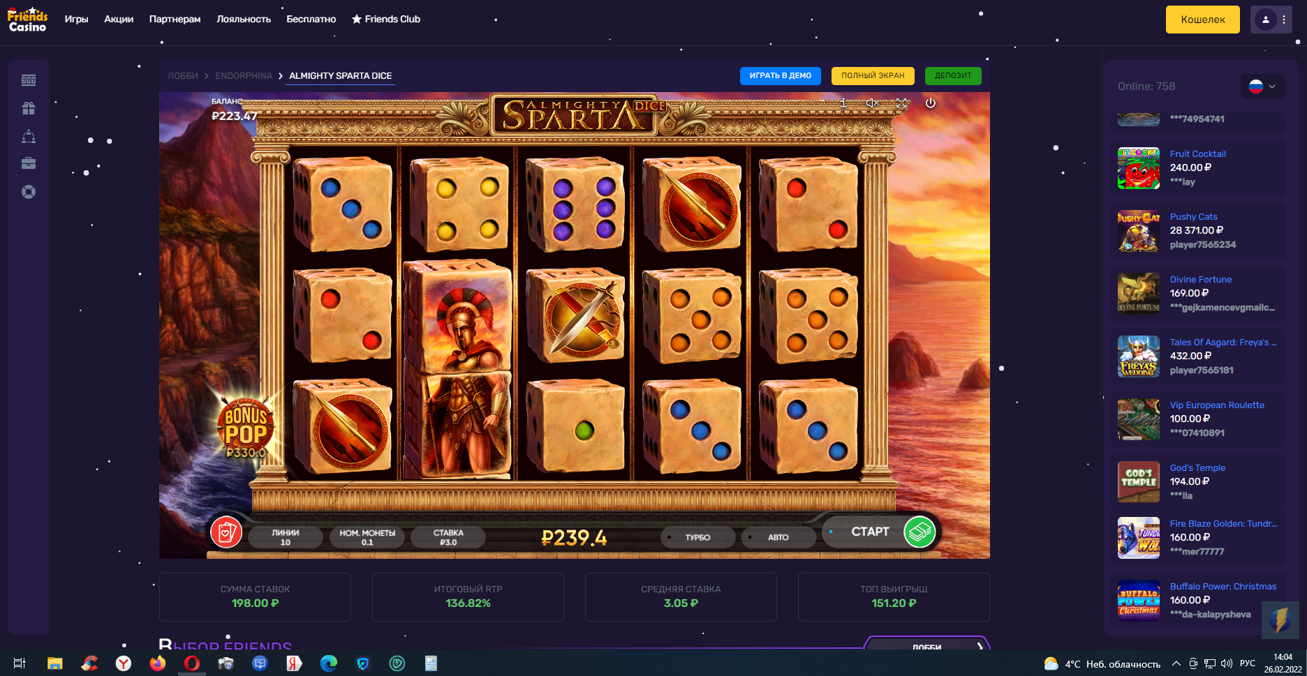 tamara Модератор Команда форума Модератор 1 Ноя 2017 3,088 118 Credits ¢53 26 Фев 2022 #36 х50 х79 х172 Вложения Almighty Sparta Dice - Friends - Opera 2022-02-26 14.01.11.png 1.8 MB Просмотры: 154 Almighty Sparta Dice - Friends - Opera 2022-02-26 14.04.42.png 1.8 MB Просмотры: 156 Macarons - Friends - Opera 2022-02-26 14.16.02.png 1.6 MB Просмотры: 152 Реакции: Slavash и win888