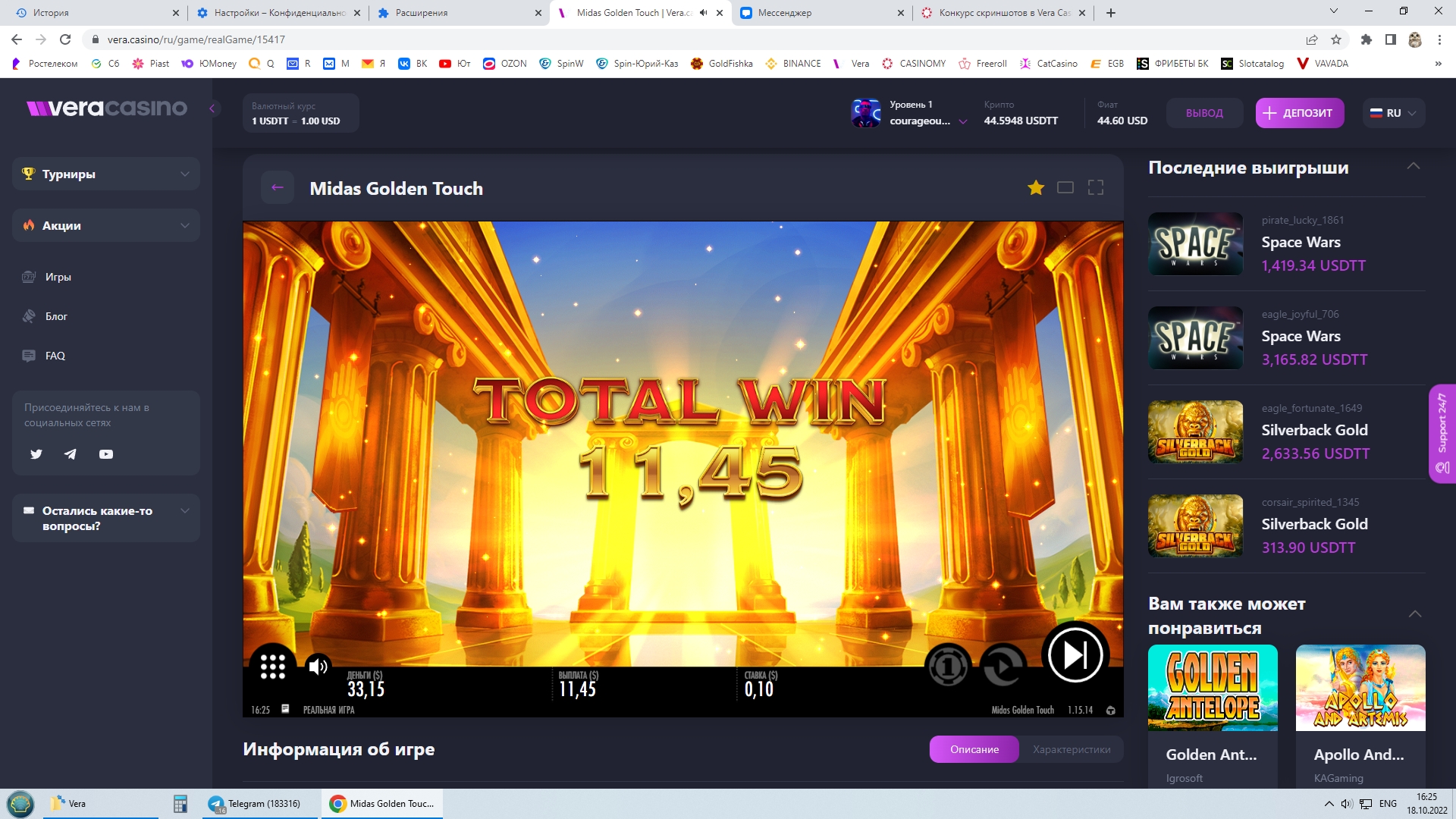 Slavash Доминатор Вайлдов Проверенный 28 Окт 2019 705 98 37 Credits ¢657 18 Окт 2022 #53 180 баксов улетело в этот говнослот Реакции: tamara