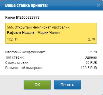На оставшиеся 50 руб. замутил вот такой экспресс. Расстроил меня этот Надаль...