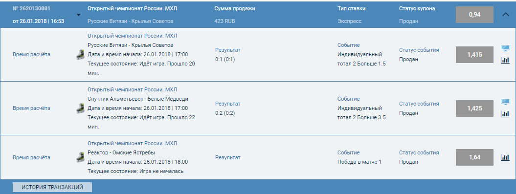 Потом делаю додеп 450 дают бонус .Составляю пресс на кф.3 и епать ставлю с основного счета:tooth: Потом быстро отдупляюсь и продаю ставку но уже вот так 2018-01-26_17-50-10.png -- щас еще сыграет полюбэ )). Вообщем составил новый поставил на весь бонус.Посмотрим че с этого выйдет.