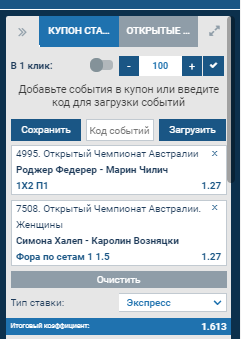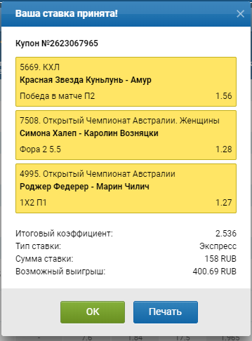 Вот так поставил.Будем посмотреть теннис)) Хоккей добавил - может все обгадить) Че т они второй раз играют также ку-амур позавчера также играли