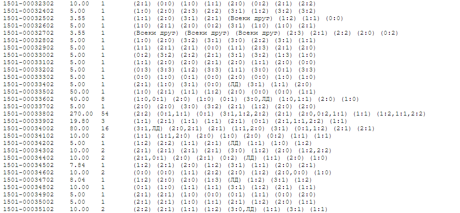 а что такое "всеки друг"?я то вообще далёк от точных счетов и не понимаю в чем прикол...но на форуме есть тема 1xbet.там представитель их иногда забегает.я думаю тебе будет интересно с ним пообщаться.а что?звучит!всеки,друг!))))Ну кто мне там говорил что 1Хфуфло это нормальная компания? Внимание..... Смотрим... Тото "точный счет" тираж 1501 смотрим скрин всех принятых ставок на тираж (а это гарантия честности со стороны конторы, понимающие люди поймут) так вот смотрим конкретно номер купона 1501-00032702..... Смотрим внимательно!!!! Это что вообще такое? Что они ох***ли совсем что ли? Разве уважающая себя контора такое будет делать?