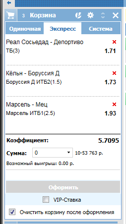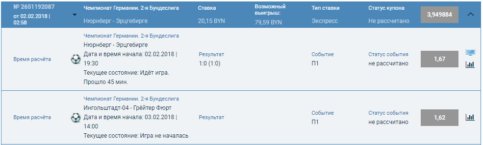 кстати,тот матч,что зашёл,был заигран на бонусные средства...не дали бы поставить...4 матча тоже норм.кеф меньше,это да.но главное,чтобы зашло...и тогда кеф в данном случае не важен...