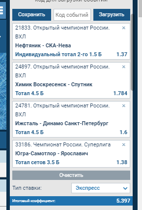 ну у тебя же написано индивидуальный тотал второго..вот я вторую и воткнул..)Серж на Нефть надо было >1.5 ну ладно Ска тоже должна пробить)