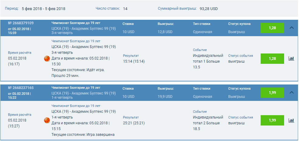 ставке это не мое к спорту у меня отношение особое . да и спорт у нас продажный (договорной) . я слотовик ) и на ставки чуйка не плохо работает. сегоднябыл соблазн поставить хоть 10-ку какую бакинских, но не рискнул..все же товарняк) баскетболю дальше