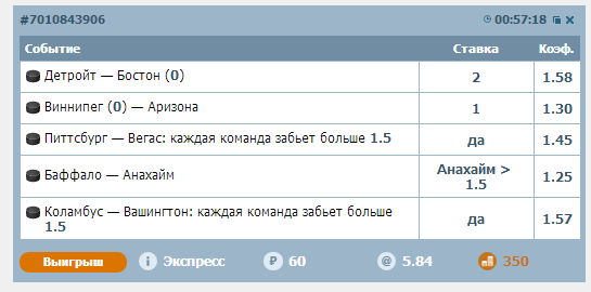 Убрал,что смущает..добавил Торонто (забьет больше 1 шайбы)