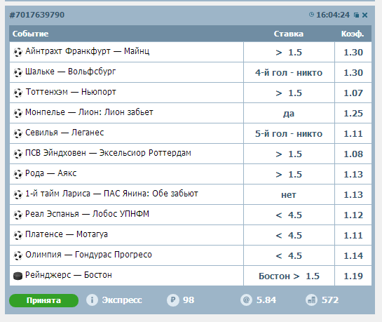 не знаю,но почему то не нравится пресс Мэджика.Испания хз.Германия привычные обе забьют тоже под...ть могут.может,я и ошибаюсь..по НХЛ не берусь спорить.но пять матчей смущают...может,просто одинарчик для разминки на 500?ну хотя бы вариант Евгения?