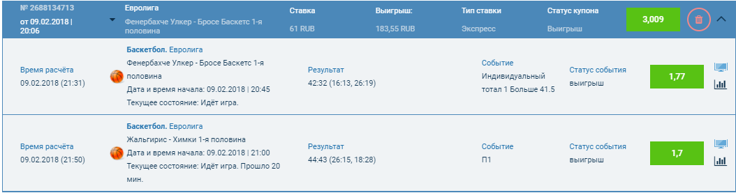 предлагаю два варианта сегодняшней Евролиги.на Црвену Звезду кеф упал,поэтому прицепил Фенер...Посмотреть вложение 43396Посмотреть вложение 43397