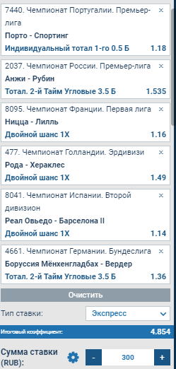 Плюс предложение Серга - два ординара по 300 р на Олимпиакос и Фенербахче ..там по каждой кэф 3 почти.. 600 в сумме ставим, 300 спустим, 900 поднимем))
