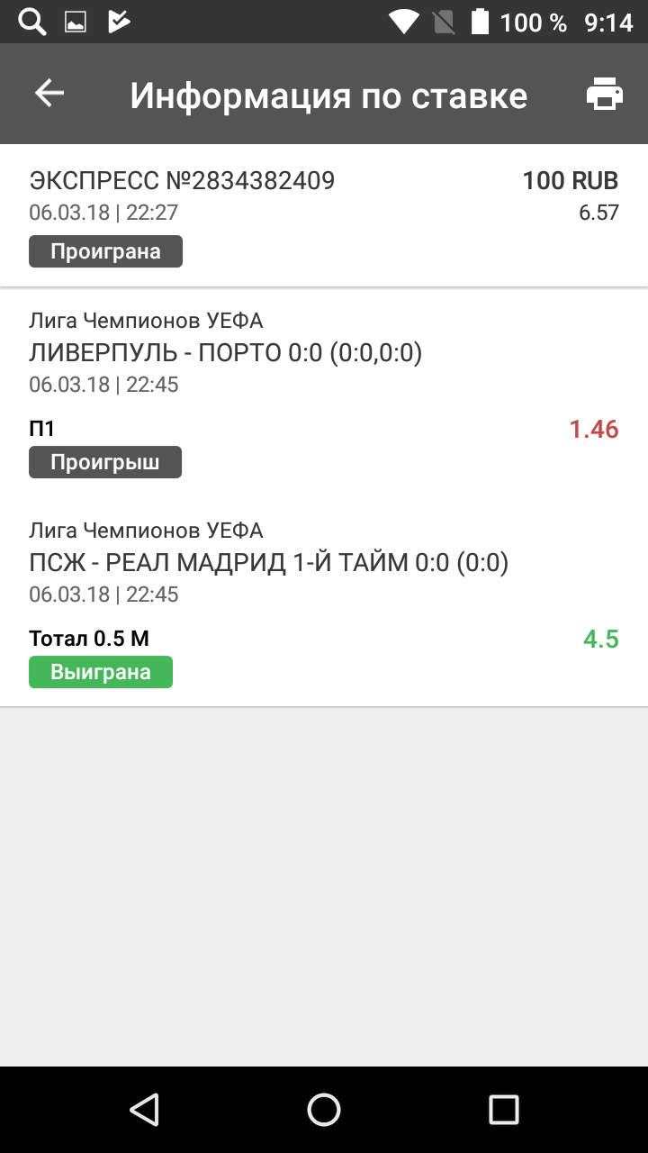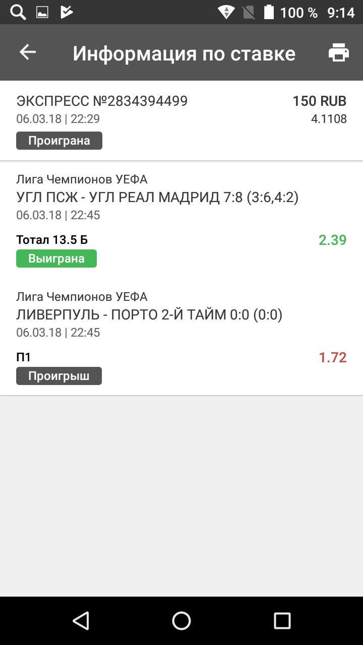 Та да жесть, такие хорошие большие кофицыенты прошли а маленькие нет. А я воздержался и на Ливер не поставил, посмотрел, что они первый матч Порту 5-0 разнесли, думаю теперь в ответном матче им ничего не надо будут молодняк резервный в ответном матче наигрывать и ходить по полю. Но зато я залепил на ПСЖ и пролетел.