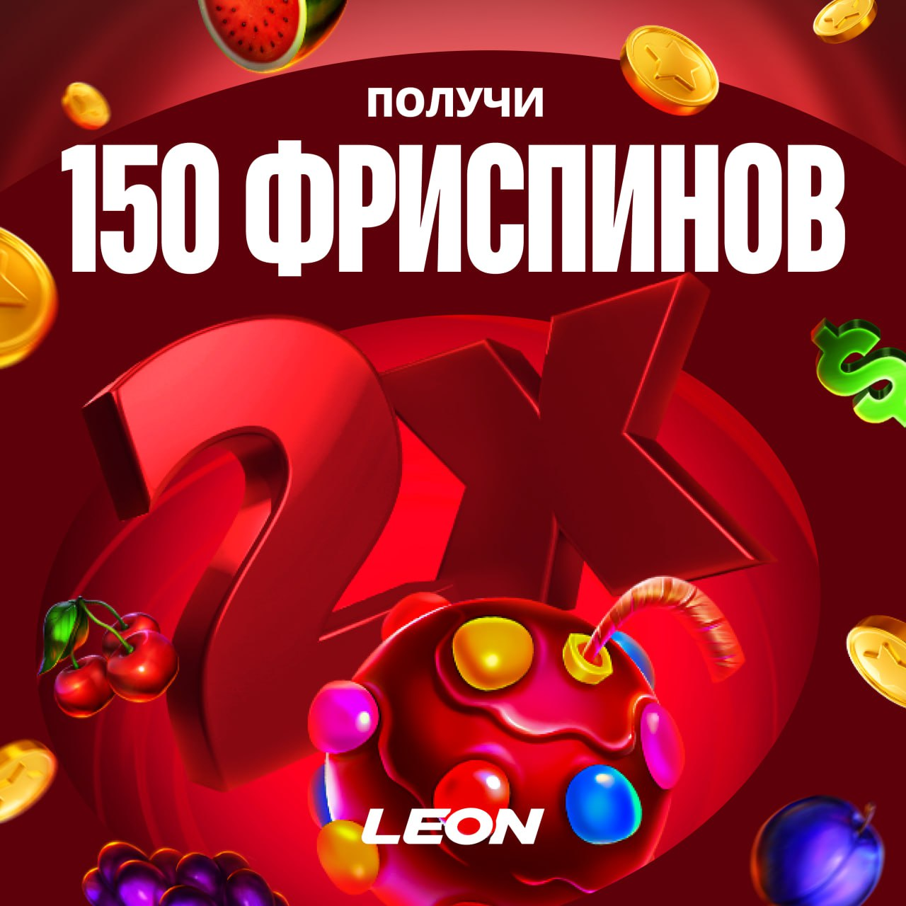 Двойной бонус — 150 фриспинов Активируй бонус к депозиту и получи до 150 фриспинов в избранных слотах. Вперед к успеху ПЕРЕЙТИ В LEONBET CASINO