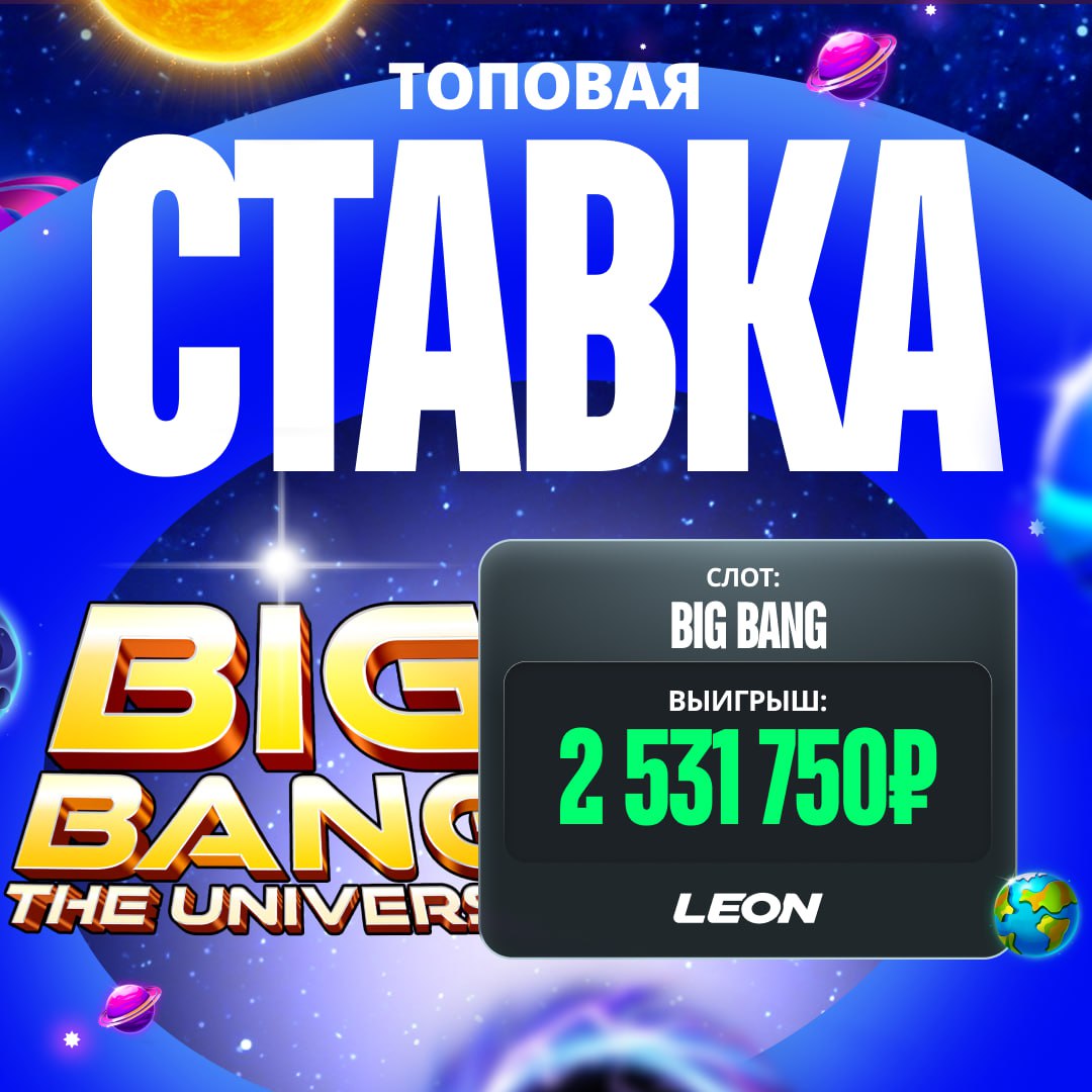 Бомбический выигрыш на 2,5 МИЛЛИОНА Слот Big Bang не оставил равнодушным нашего игрока. Исследуй и ты свои возможности в новом слоте ______________________________ ПЕРЕЙТИ В LEONBET CASINO
