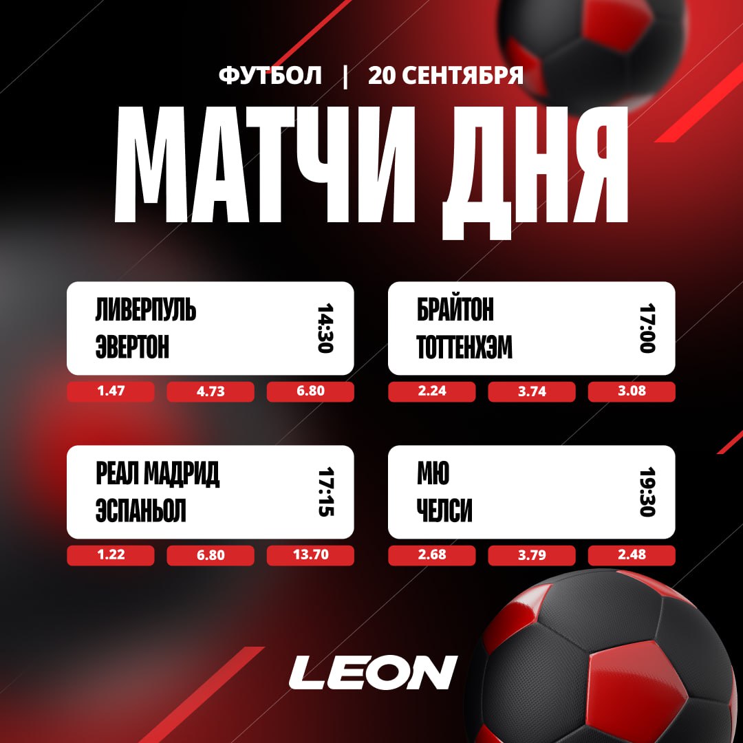 РПЛ, АПЛ и Примера ЛЕОН дарит возможность заработать до трех фрибетов по 1 000₽. Заключай пари на футбольные матчи и получай призы За фрибетами ПЕРЕЙТИ В LEONBET CASINO