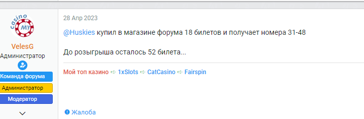 @Huskies купил в магазине форума 1 билет и получает номер 53