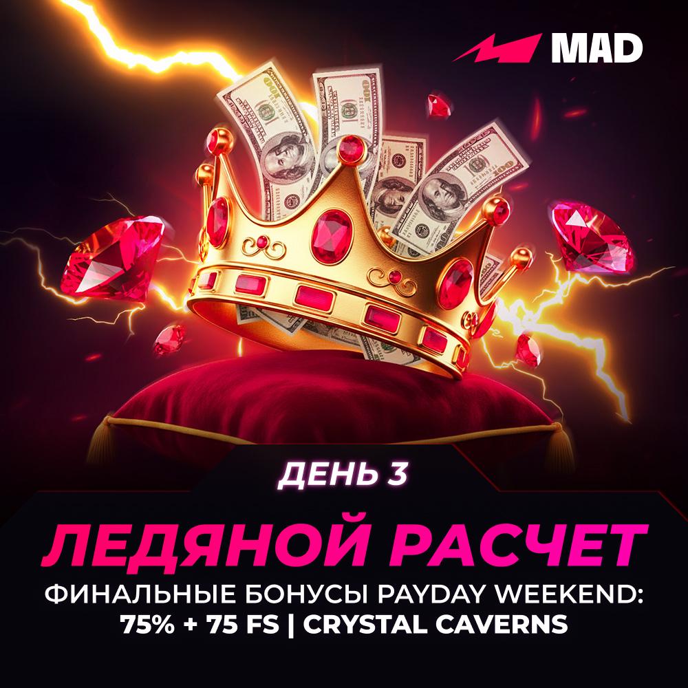 Королевские выходные выходят на финишную прямую. Это последняя раздача в Crystal Caverns Megaways — не оставляй деньги на столе: