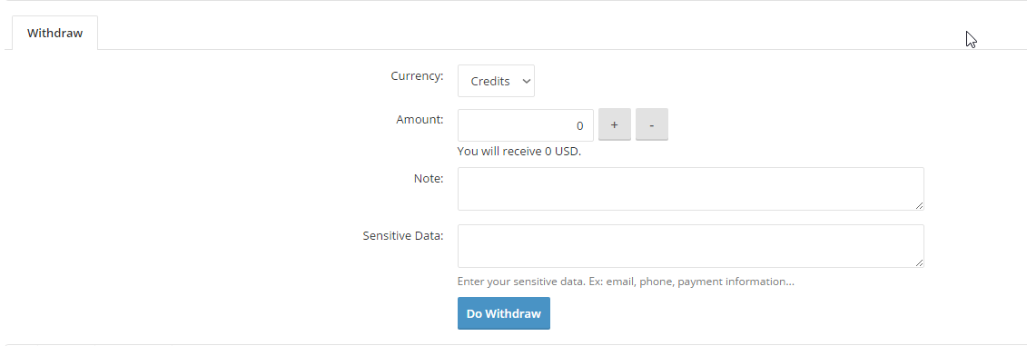 Sensitive Data: вписываем реквизит платёжной системы,на которую вам зачислят средства. (В приоритете Webmoney,VISA )