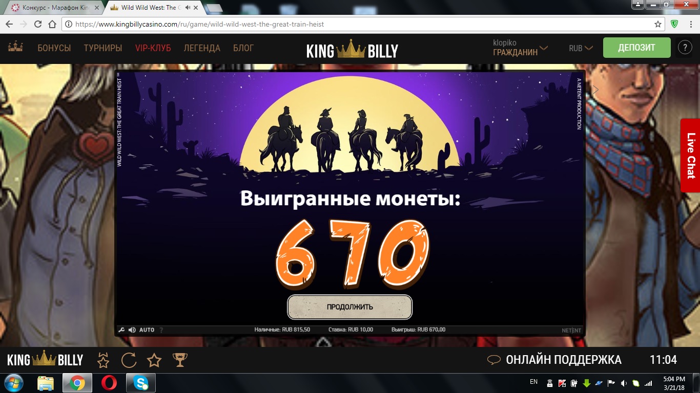 Конкурс Марафон King Billy Casino - Турнир на Годовщину - 20 000 р!