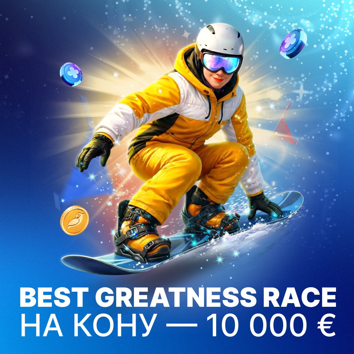 На кону — 10000 € 🤑 Присоединяйся к акции Best Greatness Race и забери до 1500 € 💸 Здесь провайдер BGaming разыгрывает 60 денежных призов.