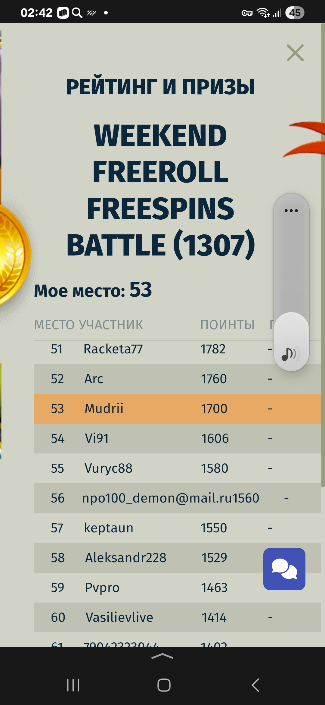 Участники бонусного задания, которые заняли место в ежедневном турнире "FreeRoll Bonus Battle" получат свои 250 FS по ставке 10 рублей (вейджер х30, макс. вывод - 3000 рублей).