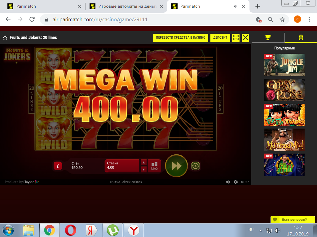 Не перестаёт меня "волновать" Париматч, своими "плюшками".....