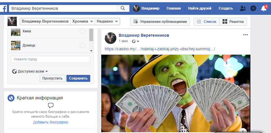 у меня тут 1 друг который играет в казино,я мог конечно в одноклассники добавить где 100 друзей, и я о каждом из 100 друзей знаю чем он занимаеться ,ну не играют в казино и т.д, прям каждому писал играю ли они в казяки или нет, зато этот 1 друг играет 100%