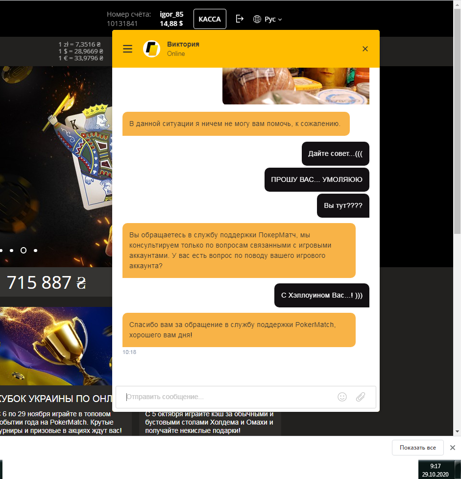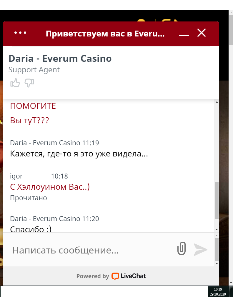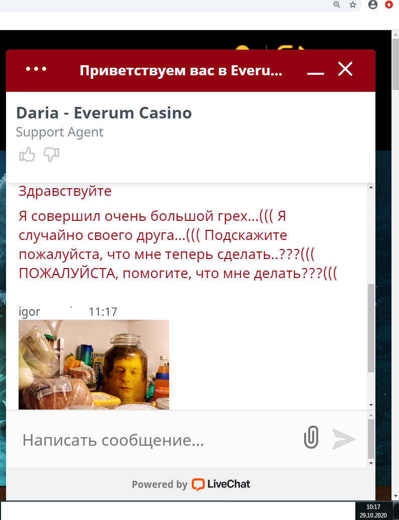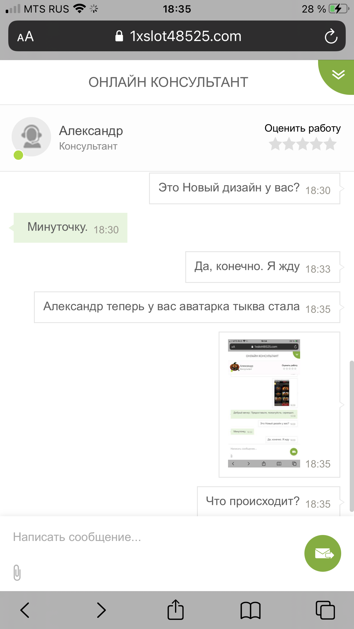 играю в общем в слоты и тут бац на весь экран какая то тыква стращная появляется на экране и вместо глаз у нее дырки а в них горит свеча и имя светиться Константин и что то непонятное мелким шрифтов написано ну типо предупредить я должен Онлайн консультанта об опасности