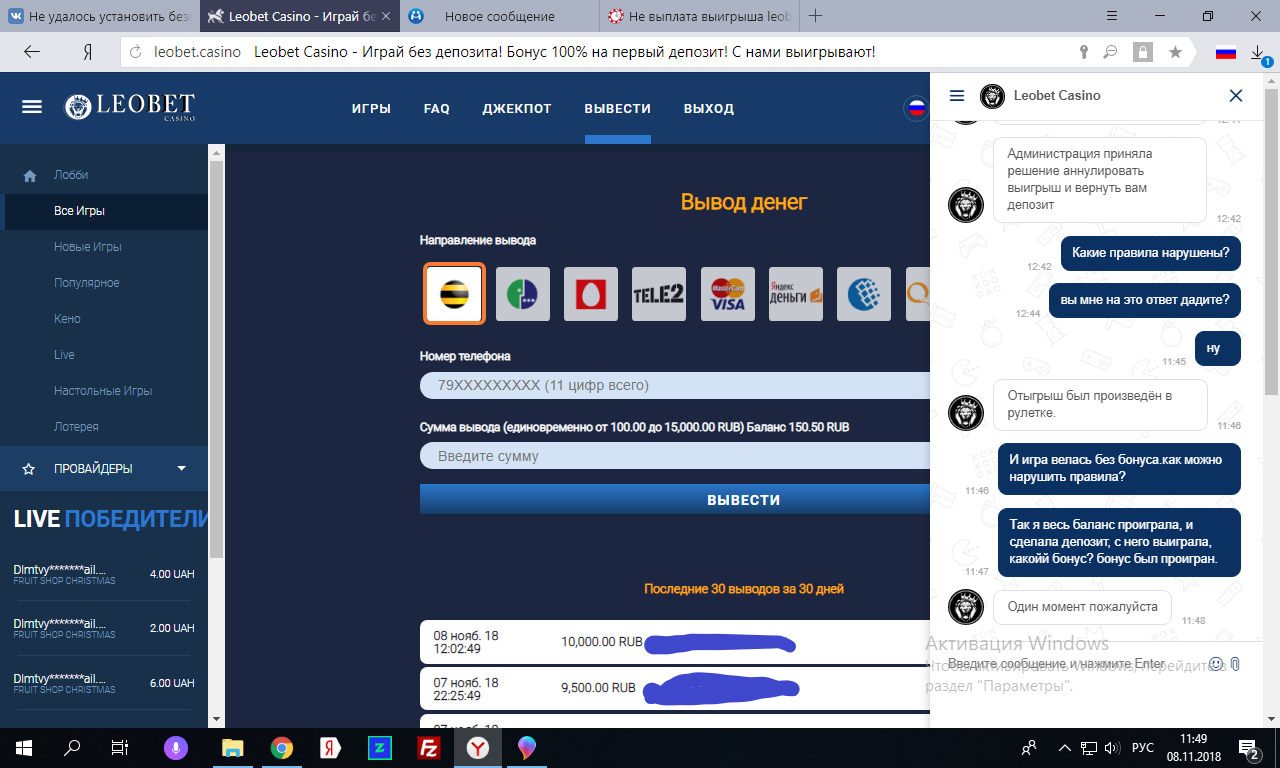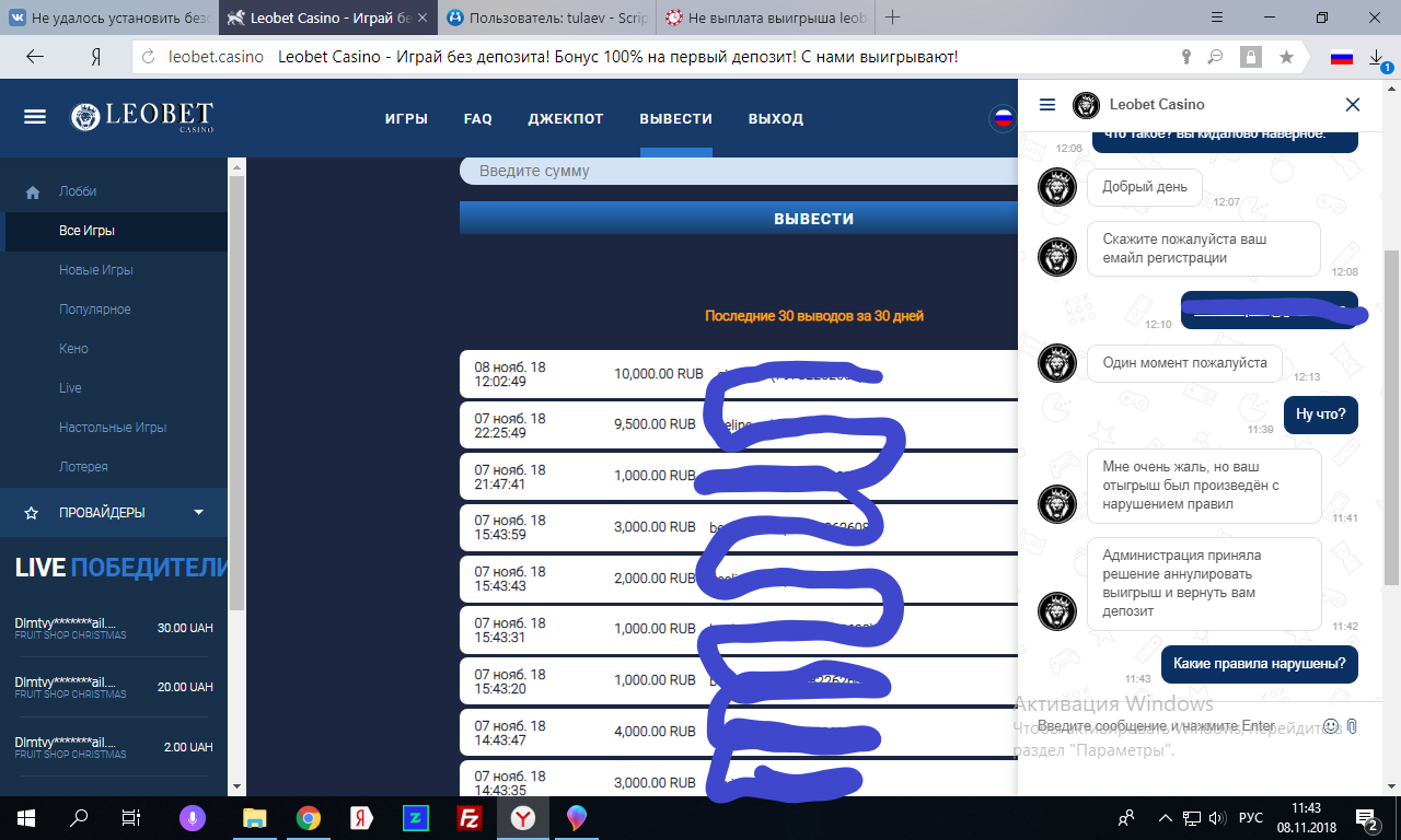 Игра была на депозит,без бонуса. бонус вчера слили и сделали депозит, после поднялись до 11к и поставили на вывод, а они заряжают мне что я играл на бонус, а теперь как всегда сейчас ниже напишу какой ответ мне дал чат.Берете бонус в казино - слоты, играете в рулетку, начинаете ныть что вас не справедливо блочат, это казино, и только дай им повод тебя наеб""ть, они это сделают.