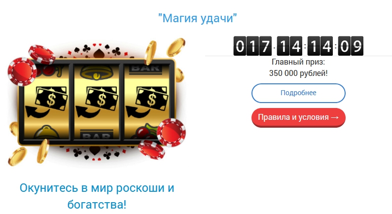 Casino Nevada запустила новую ежемесячную лотерею "Магия удачи"! Принимайте участие в лотерее и получайте сногсшибательные призы! Чем больше билетов вы получите, тем больше шансов стать золотым призером в магической лотерее.