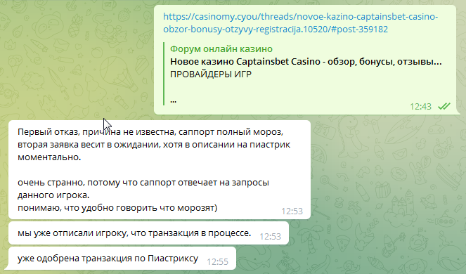 верификацию проходил?Короче, вообще не понятно что с выводом. Первый отказ, причина не известна, саппорт полный мороз, вторая заявка весит в ожидании, хотя в описании на пиастрик моментально.