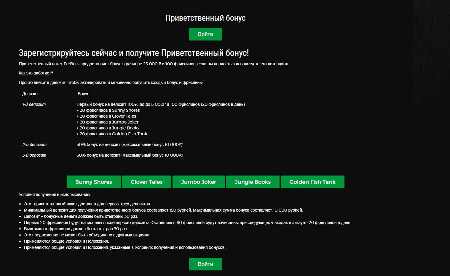 Бонус на депозит Новое казино FatBoss(Фатбосс)Обзор,акции,бонусы