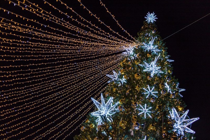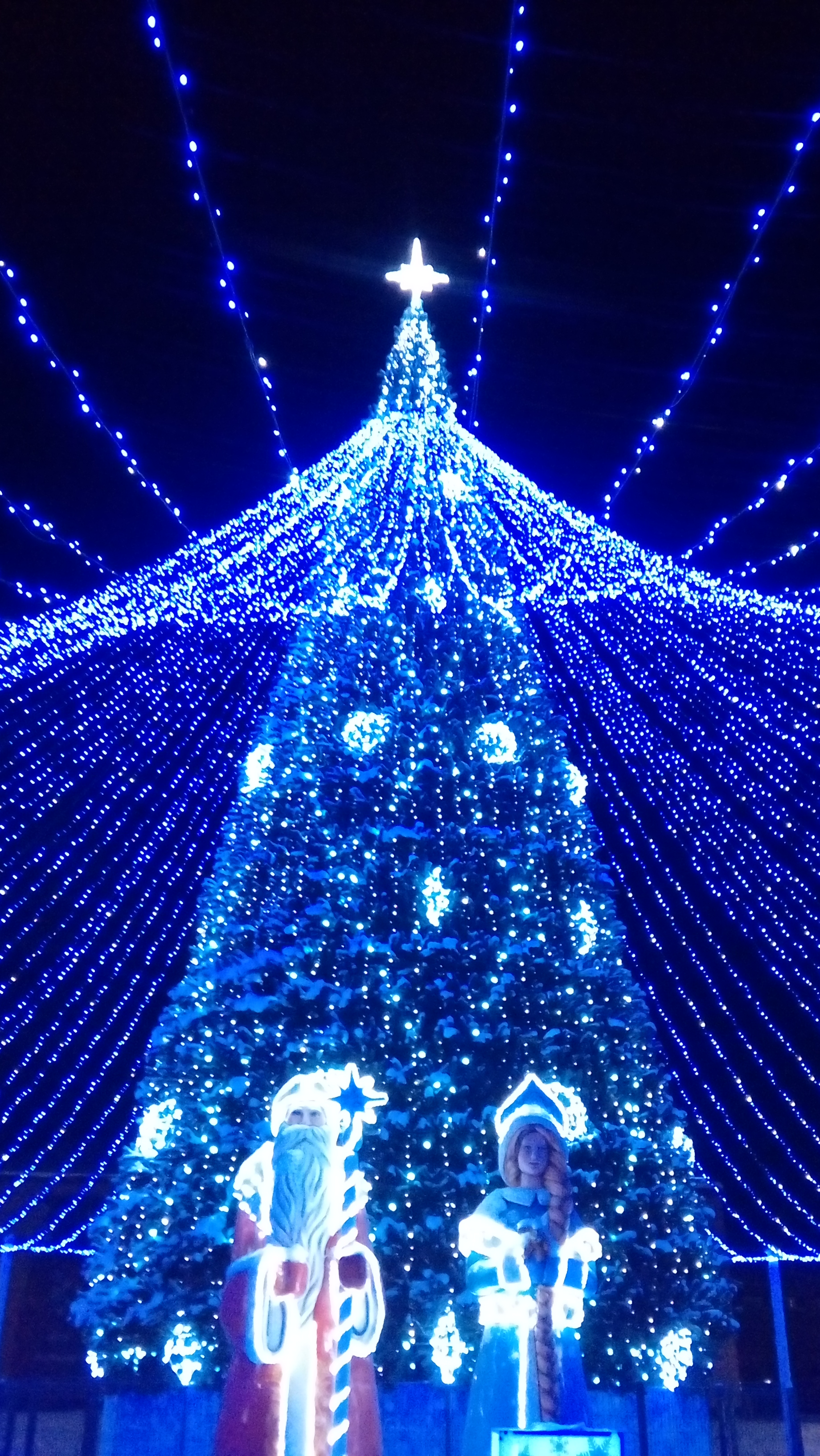 Главная городская ёлка ещё на стадии сборки, так что пока только эта). Дома ёлку не ставлю. Искусственные это не то, а живые - исключено. Я - таёжник. Не принято)