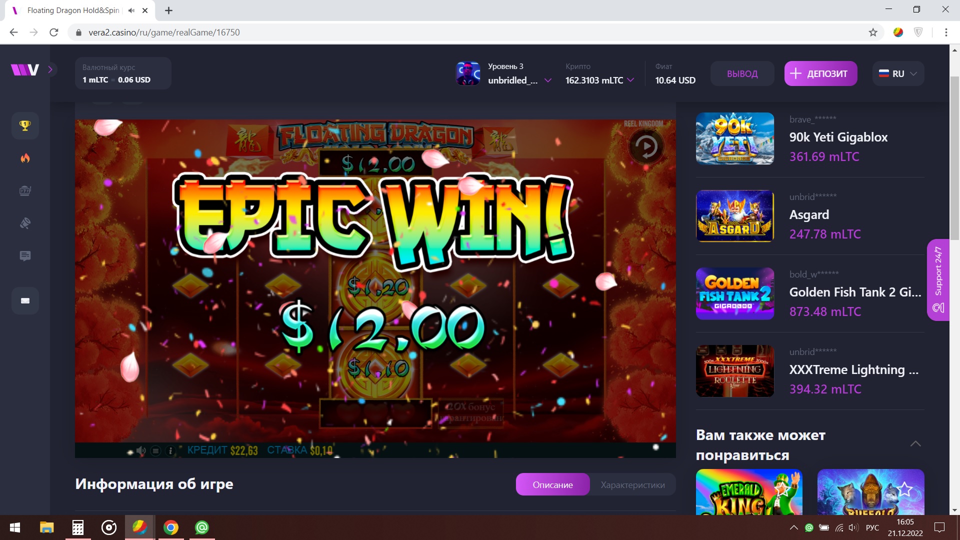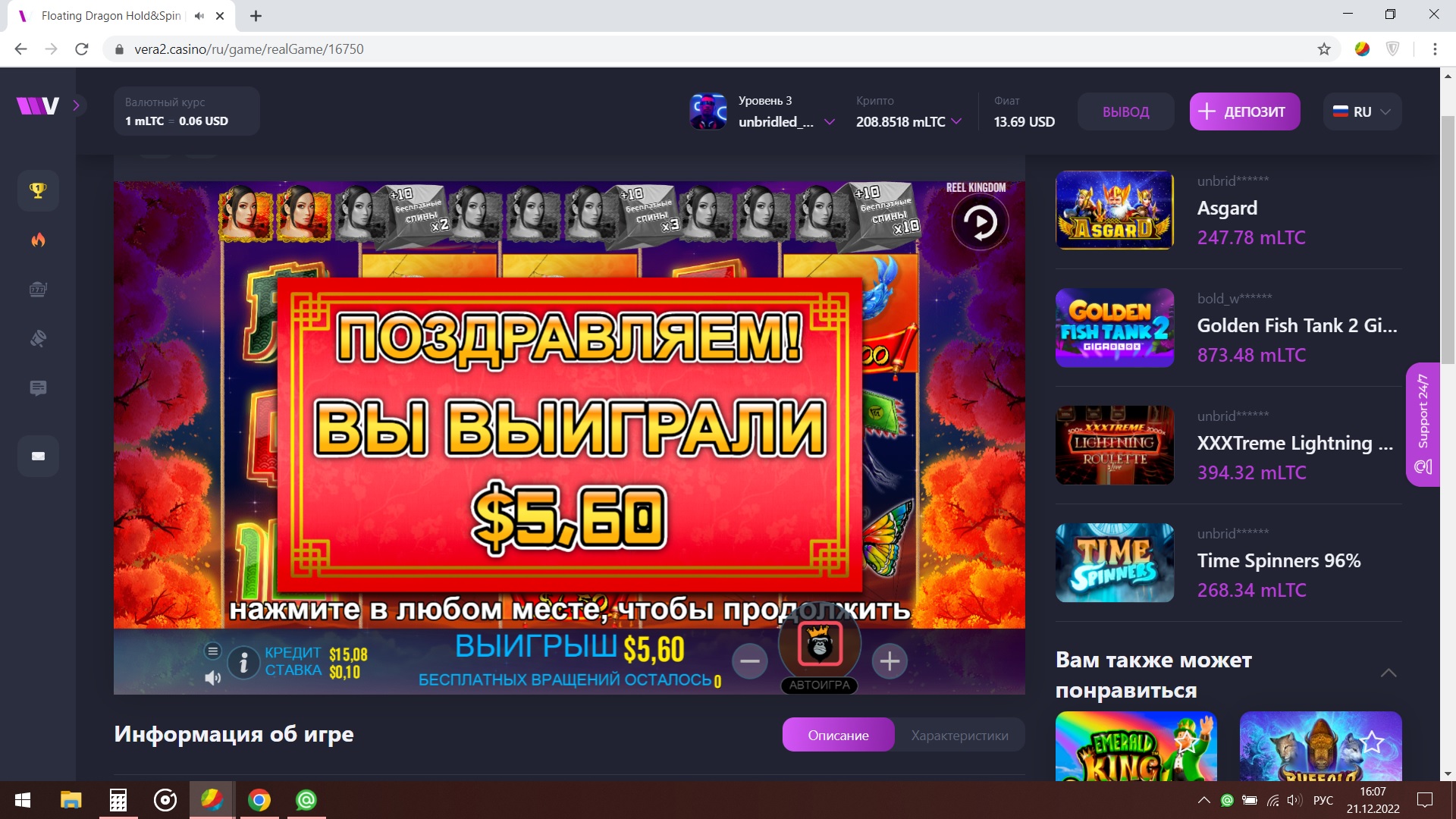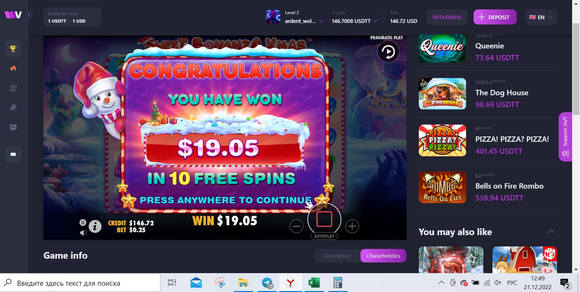 3) 500$ на баланс >>>казино Vera<<< без условий по выводу, получит первый кто поймает занос ровно х2022 или х2023 в этом казино, если такого заноса не будет, то приз будет составлять 200$ и заберет его тот, кто будет ближе всего к такому результату в этом казино по итогам конкурса! - ближе всего @Спортсмен с х2224