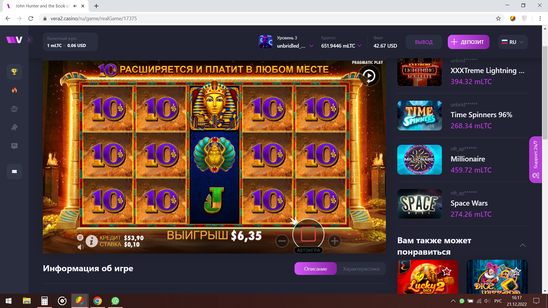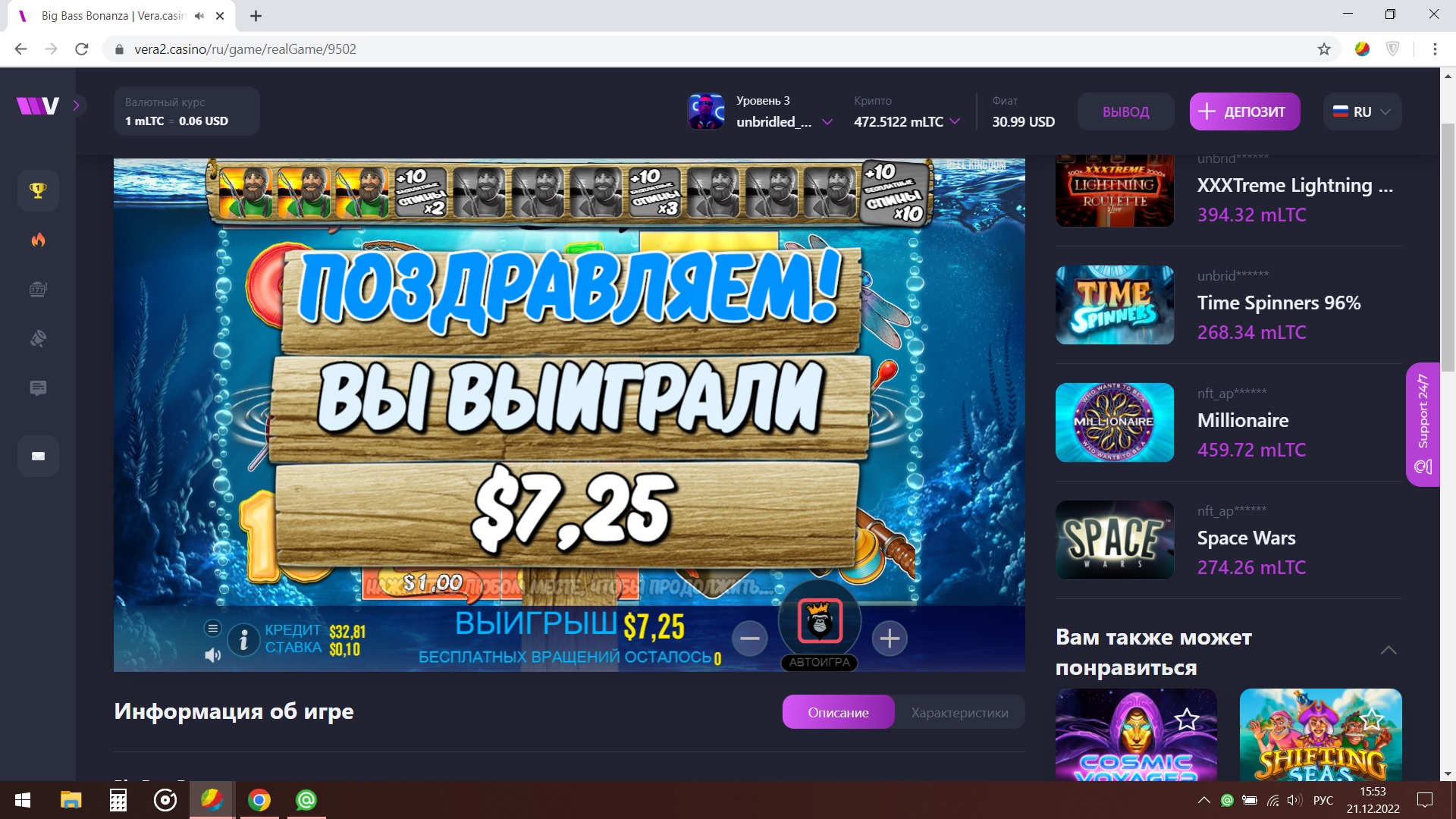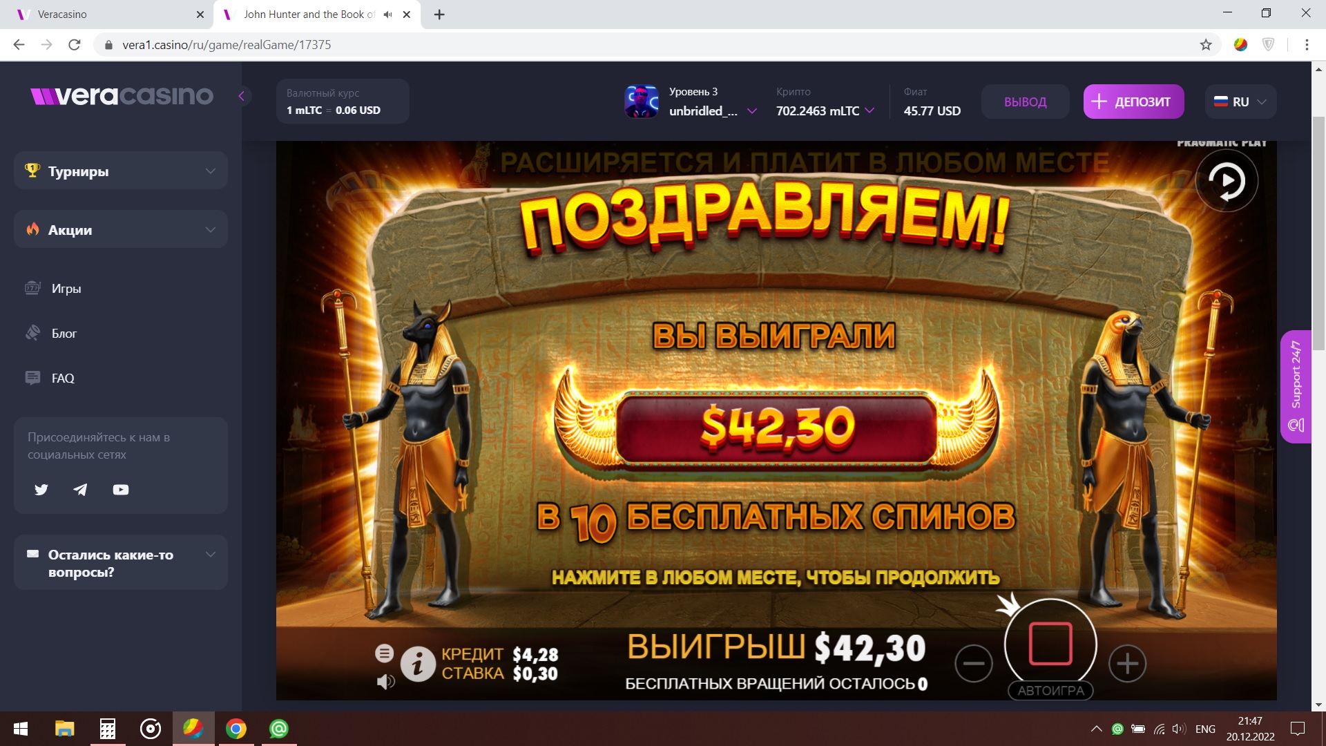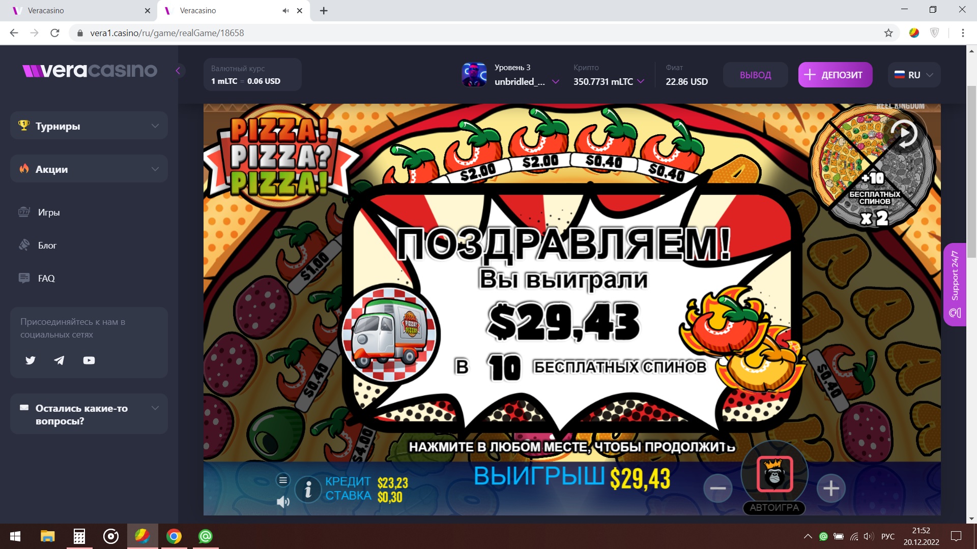 Сегодня играем в казино >>>Vera<<< и получаем тройные баллы! Всем удачи!