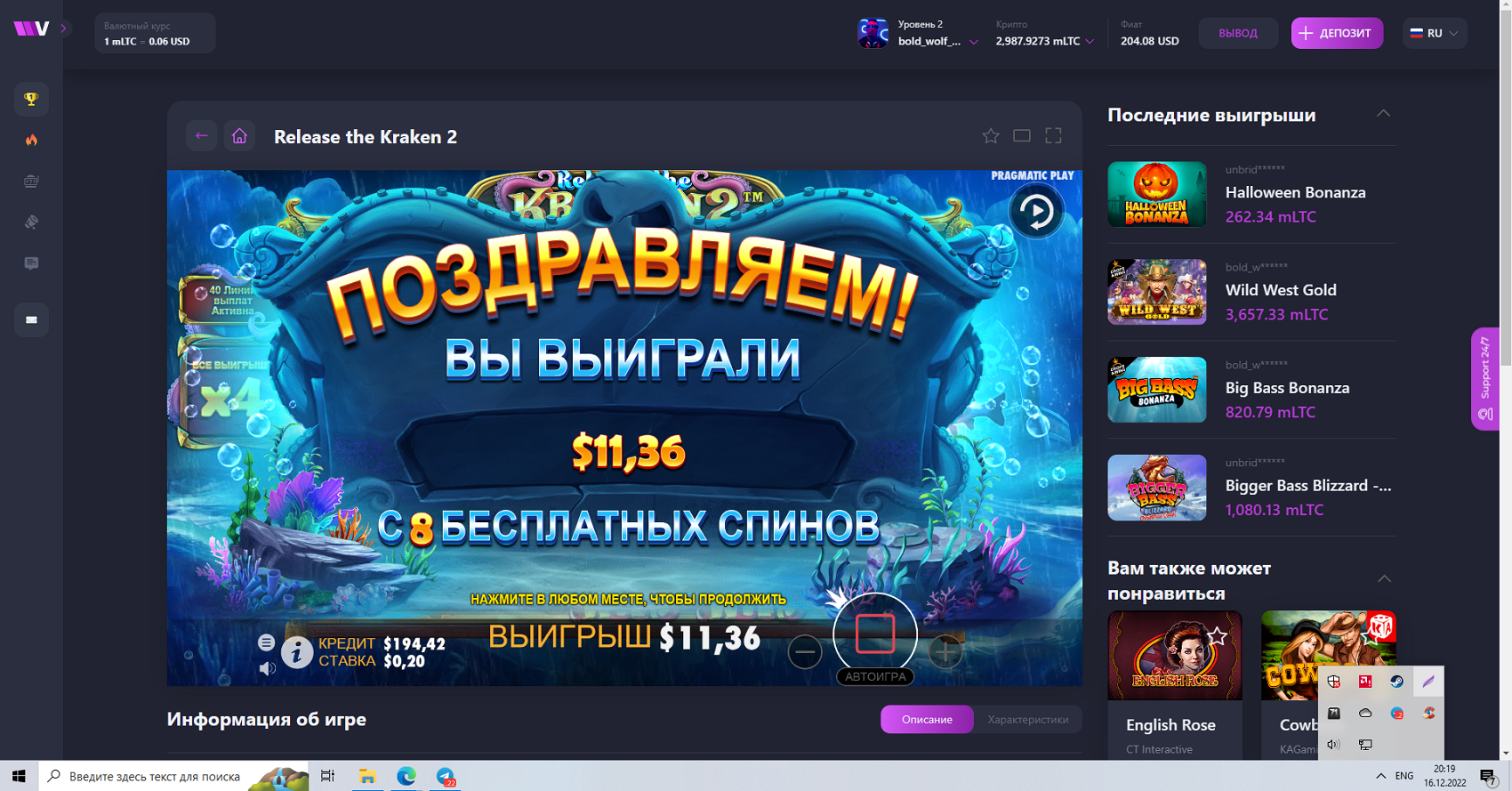 7 место - @win888 - 3 326,25 балла - претендует на приз 75$