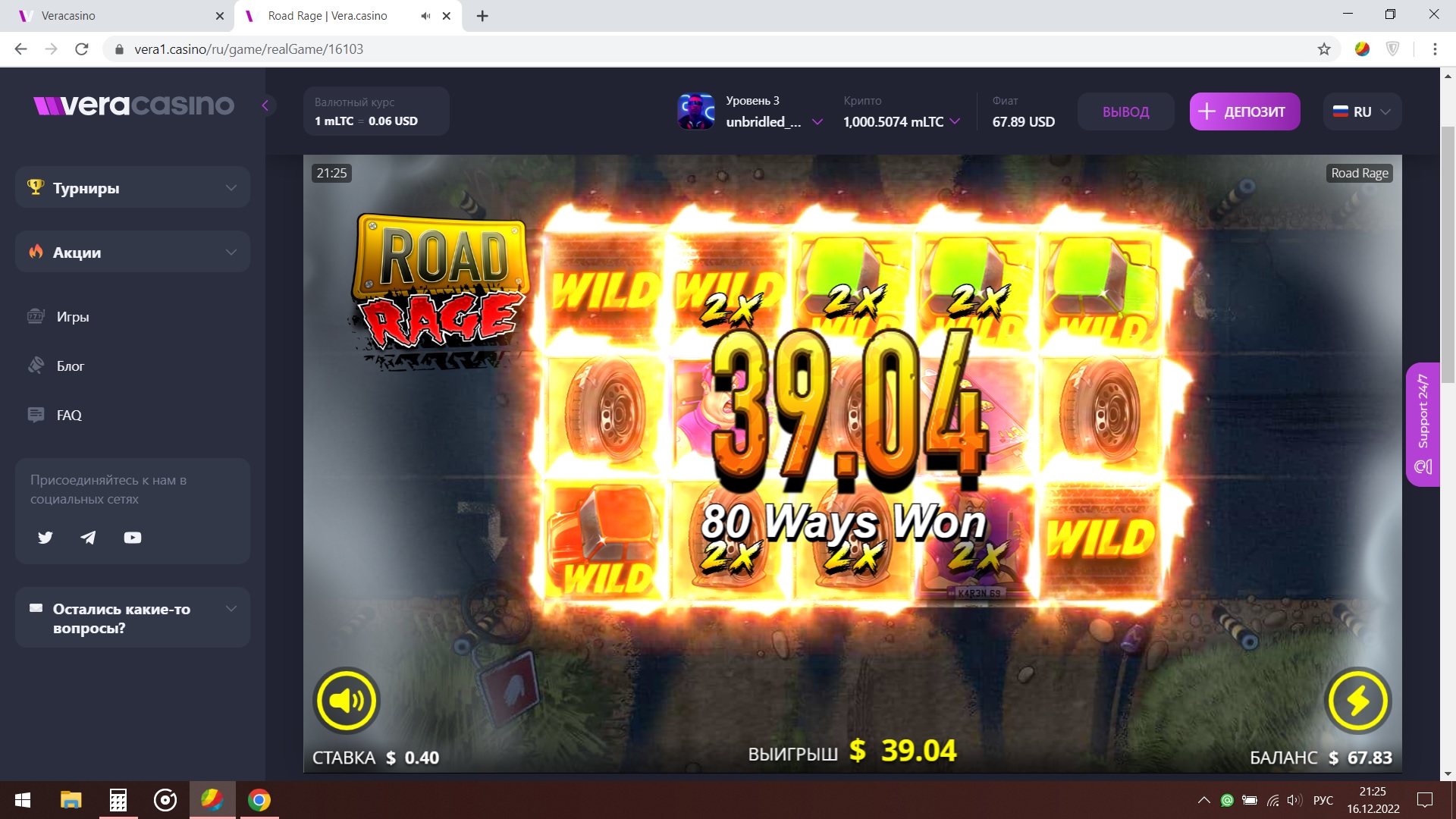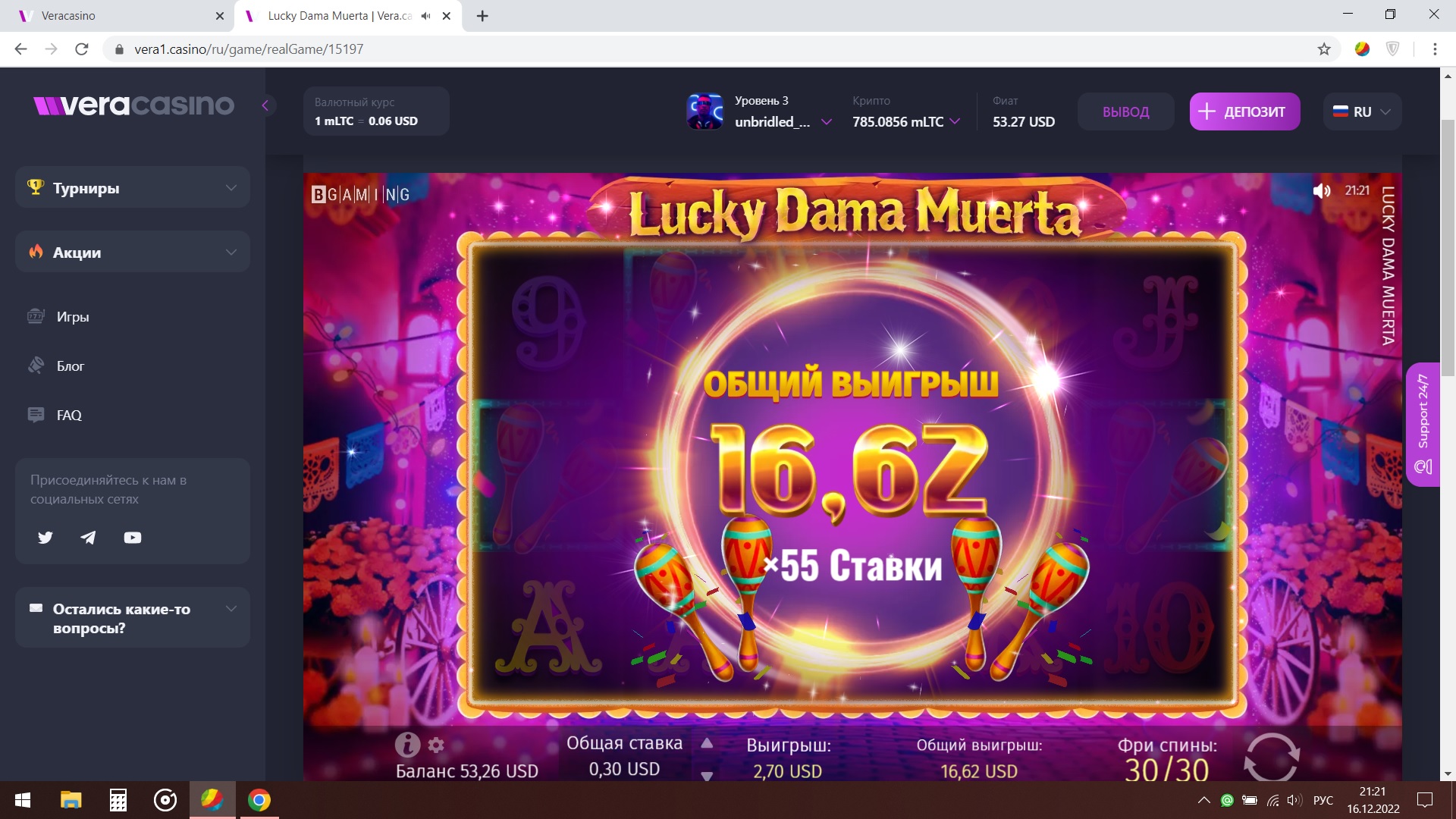 3) 500$ на баланс >>>казино Vera<<< без условий по выводу, получит первый кто поймает занос ровно х2022 или х2023 в этом казино, если такого заноса не будет, то приз будет составлять 200$ и заберет его тот, кто будет ближе всего к такому результату в этом казино по итогам конкурса! - ближе всего @Спортсмен с х2224