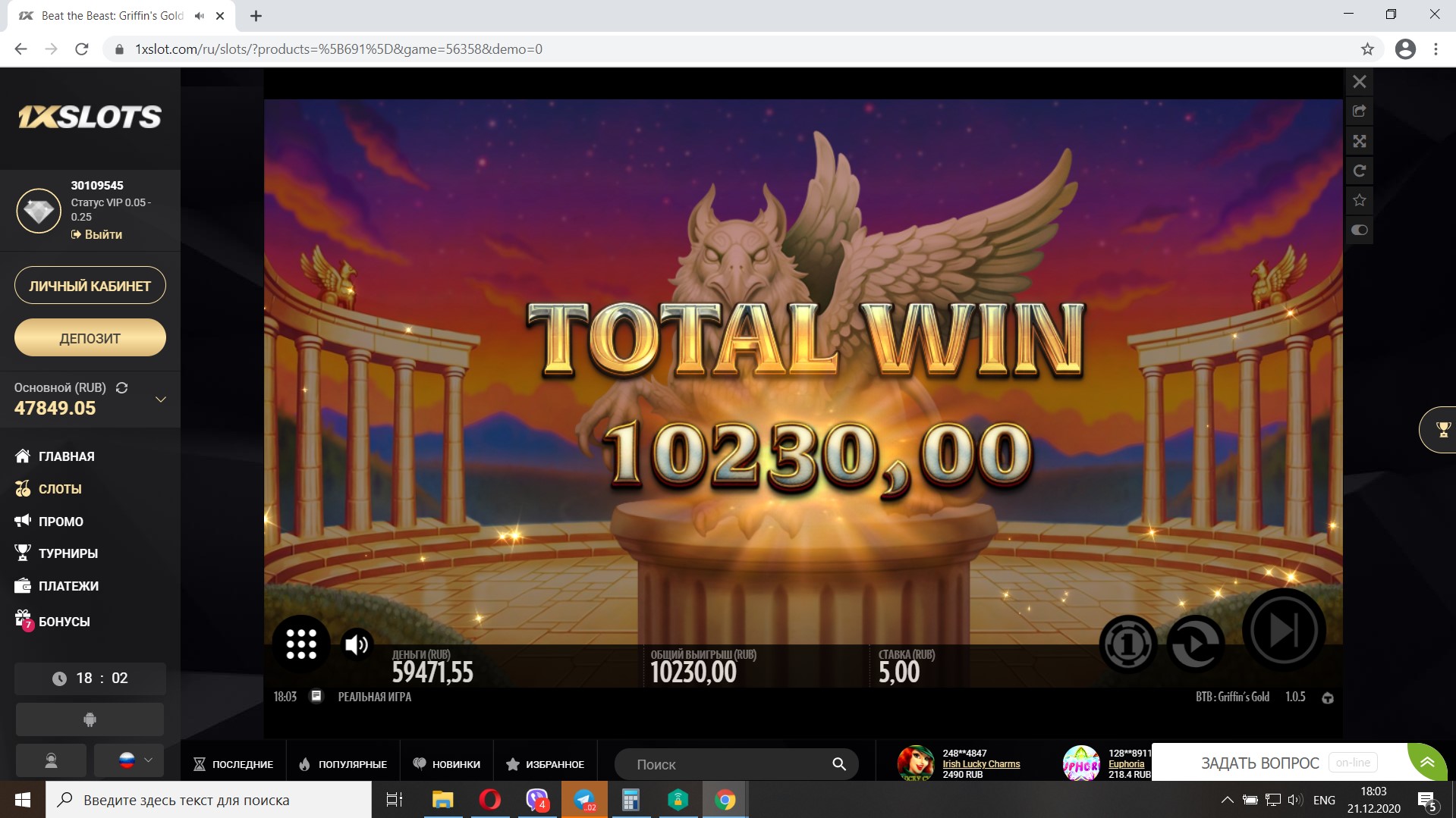 Slavash Доминатор Вайлдов Проверенный 28 Окт 2019 705 98 37 Credits ¢657 22 Дек 2020 #277 1иксслот Ставка 10₽ Х116,6 Вложения Screenshot_2020-12-22-00-35-48-828_com.android.chrome.jpg 1.1 MB Просмотры: 140 Реакции: VelesG
