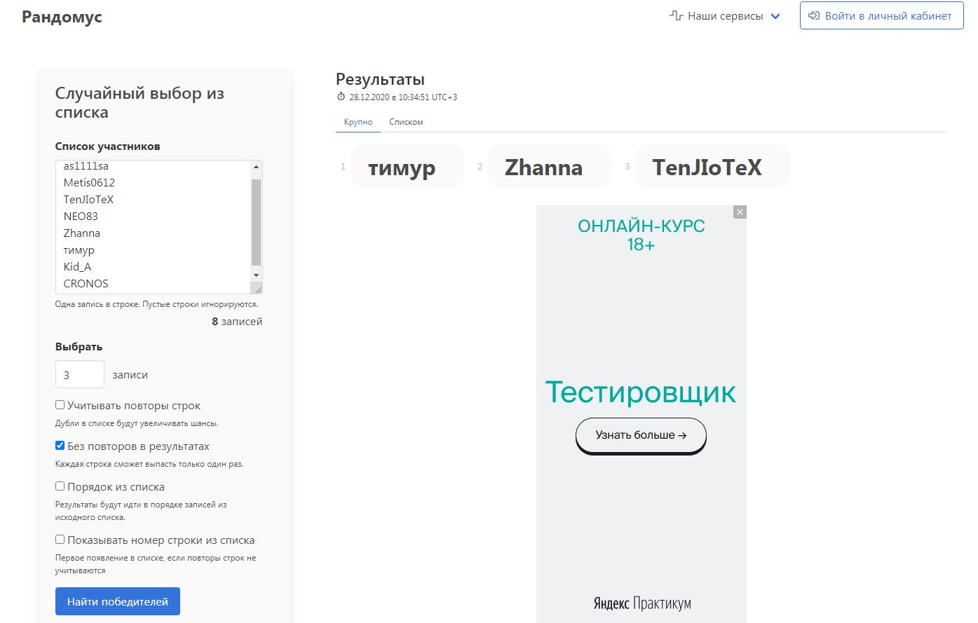 Всех ребят призеров и организаторов конкурса поздравляю! молодцы - круто поиграли (не мог полноценно играть). С наступающим НГ !