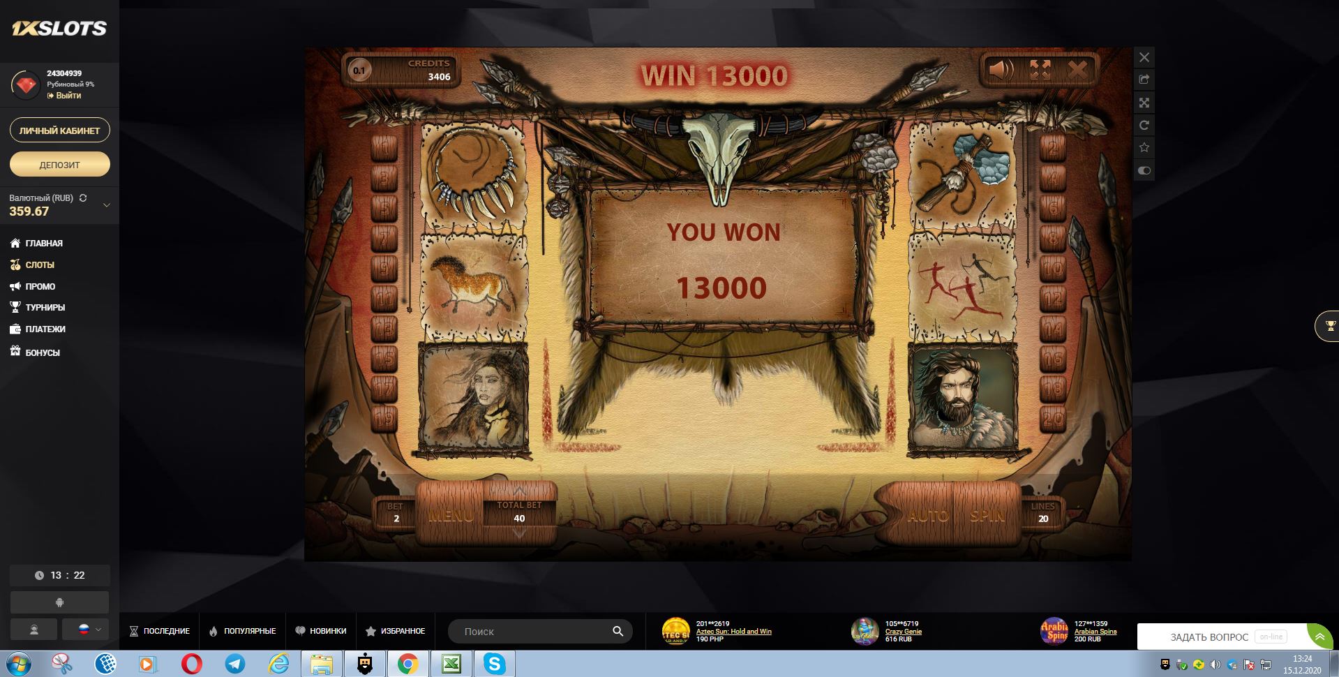 1xslot ,ставка 20.20Еще на скрине не видна ставка... жду дополнительную информацию по этому скрину и другим...