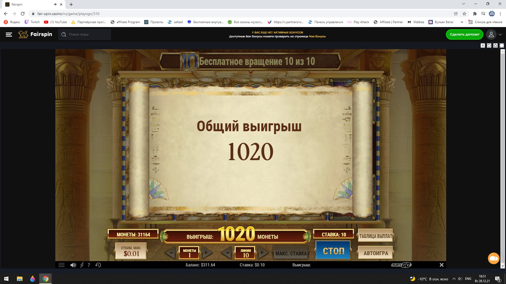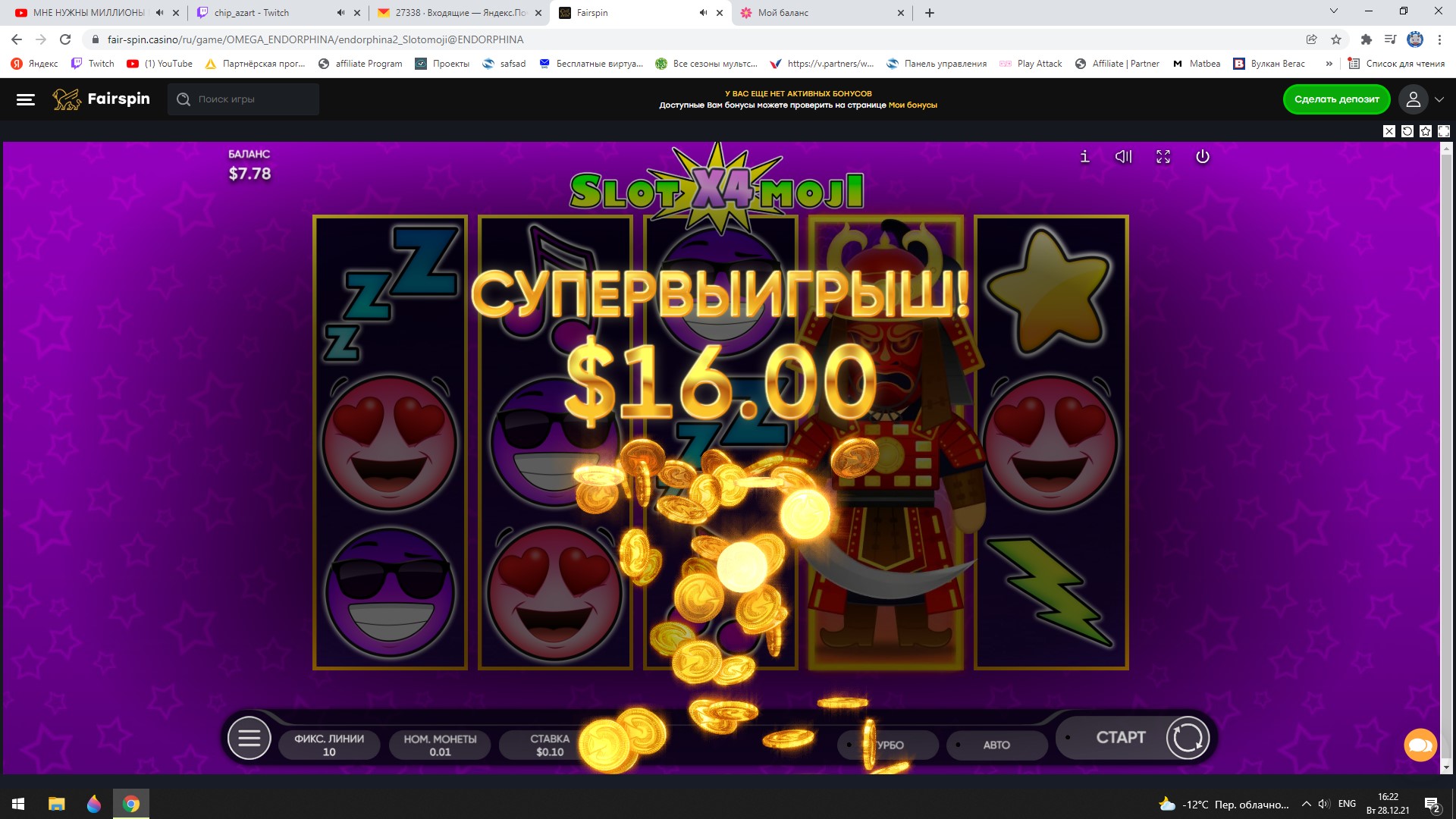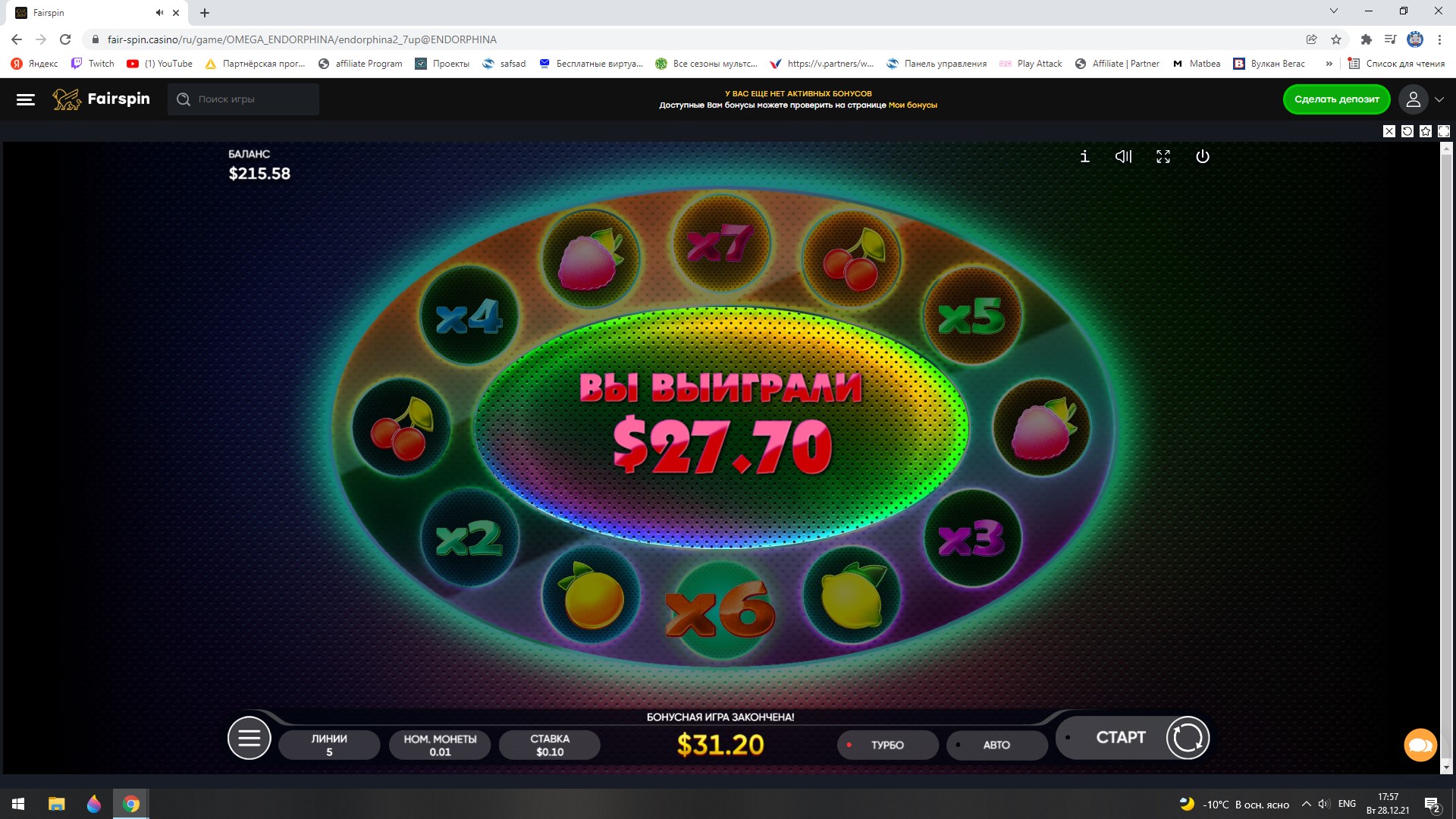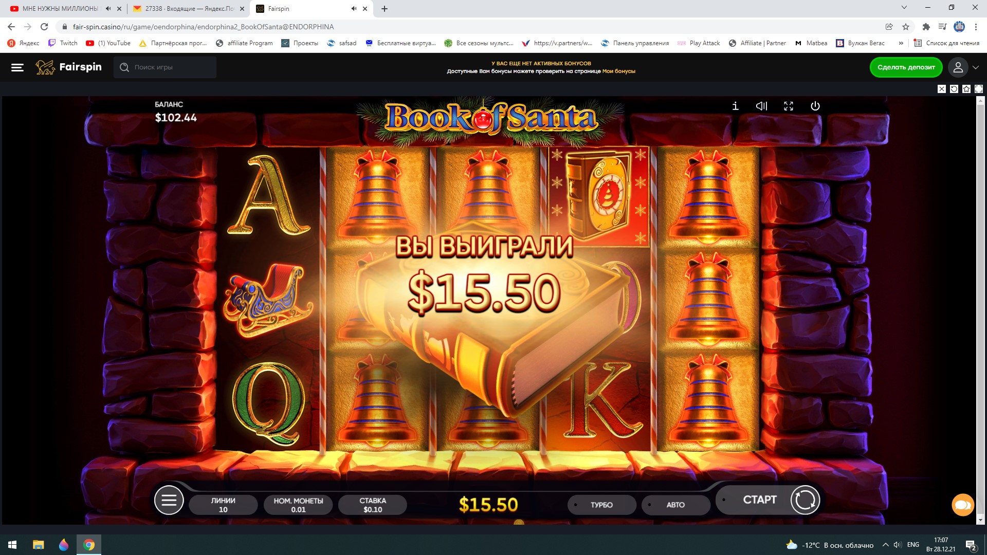Конкурс Новогодняя гонка скриншотов в казино Fairspin - призы 1000 USD!