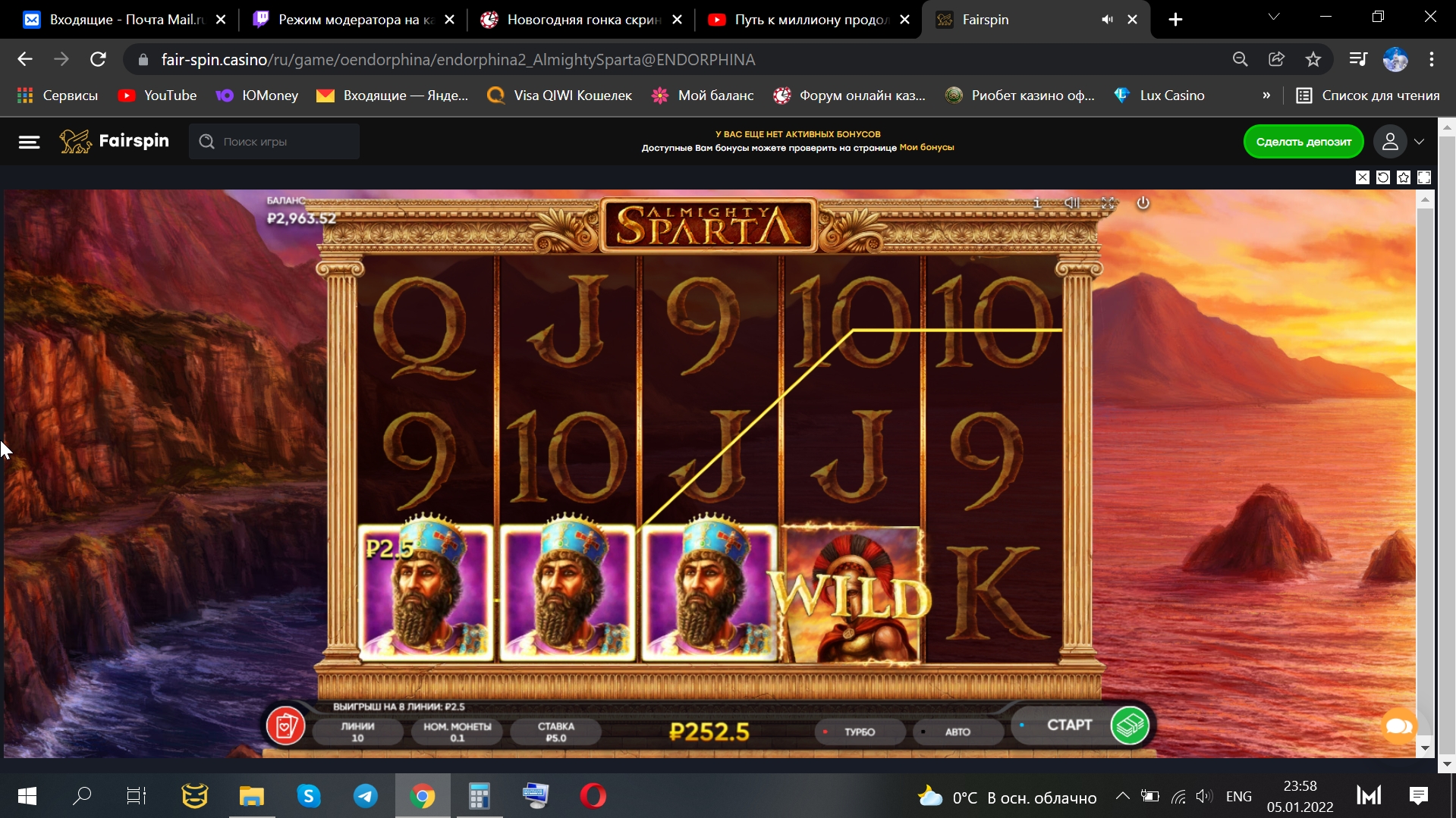 Нет? Тогда регистрируйся по промокоду CASINOMY и забирай 200% + 100 FS + 5$ free bet при первом депозите от 2000 руб!
