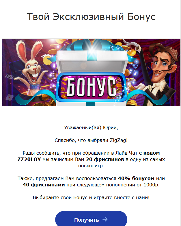 Акция действует в соответствии с Правилами и условиями ZigZag777.com