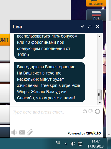 Для активации Фриспинов необходимо обратиться в чат с кодом RAINBOWSPINS сразу же после пополнения счета на указанную сумму.