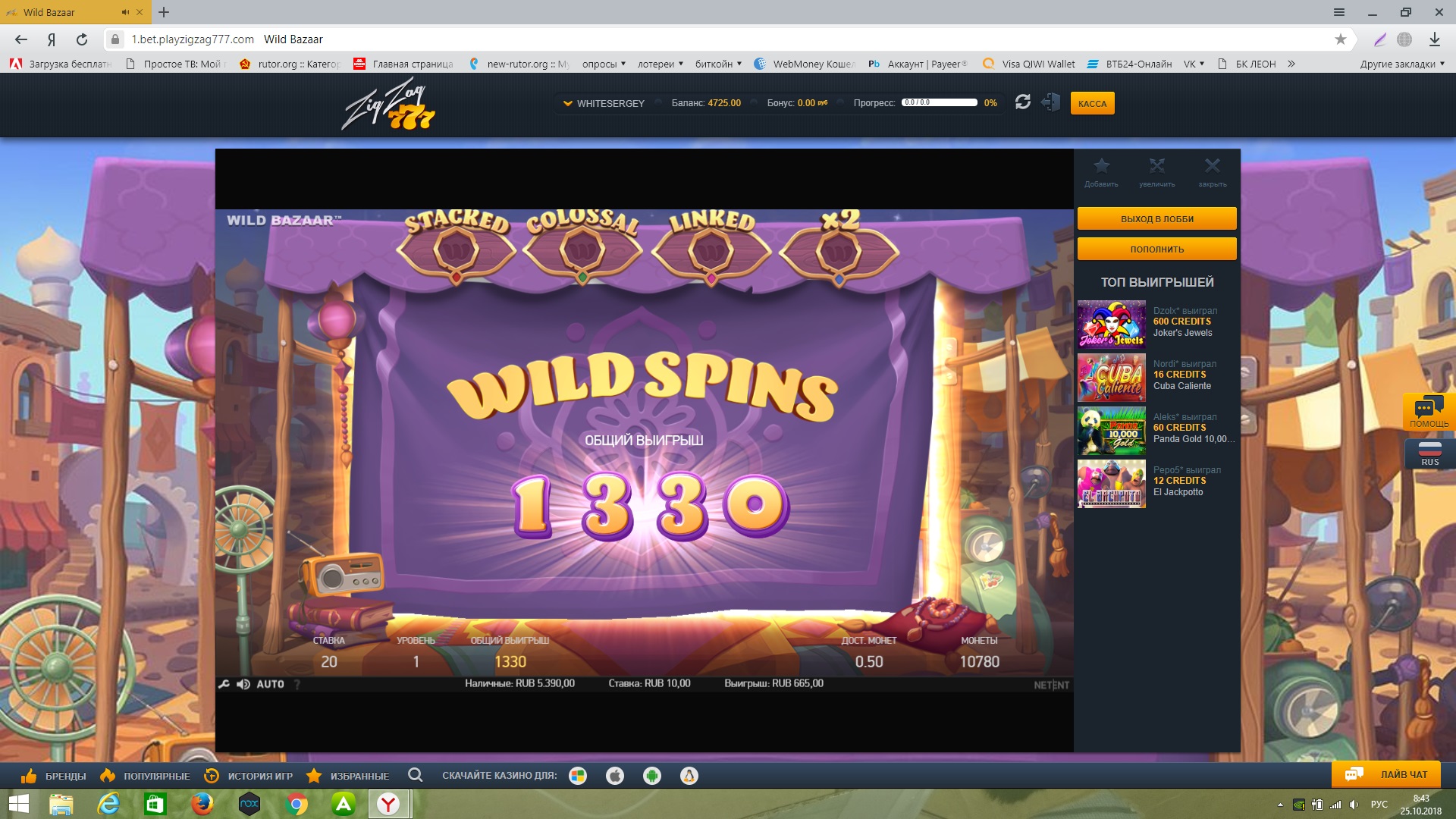 Акция действует в соответствии с Правилами и условиями ZigZag777 до 12 ноября 2018 года 18:00 МСК