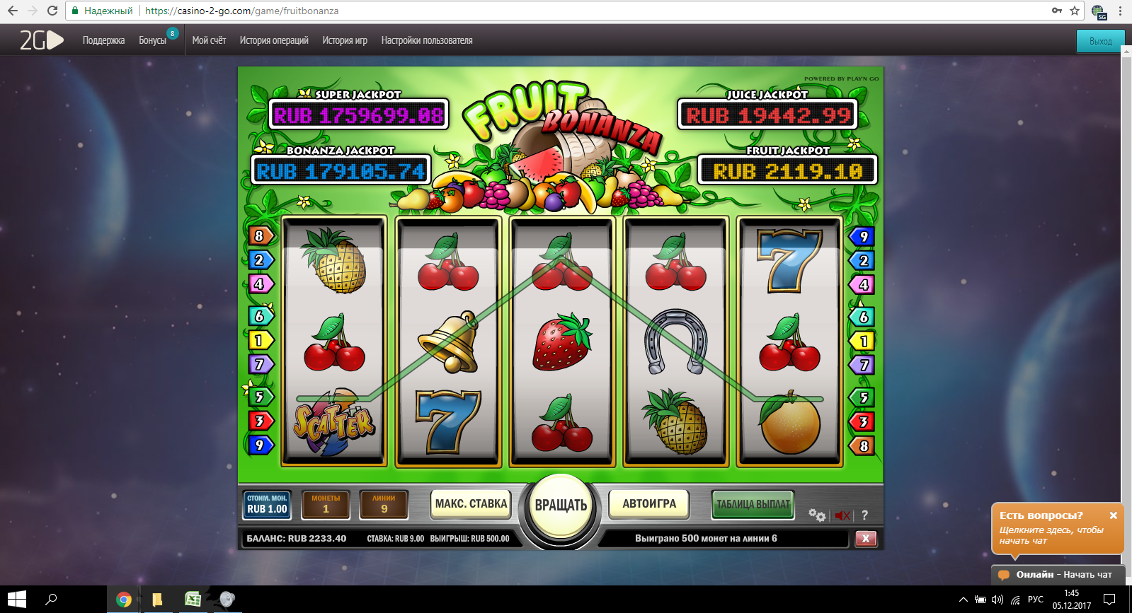Представитель подскажите в этом слоте Fruit Bonanza поймал 3 симвала джекпот (Правила Соберите три символа джекпота в любом активном ряду, чтобы выиграть Fruit Jackpot) Дало только 50 рублей по ставке 9руб. Проверьте пожалуйста .А то в одном казино была подобная ситуация целый месяц почти проверяли в итоге сказали сбой у поставкщика софта и выплатили .правда только половину суммы.